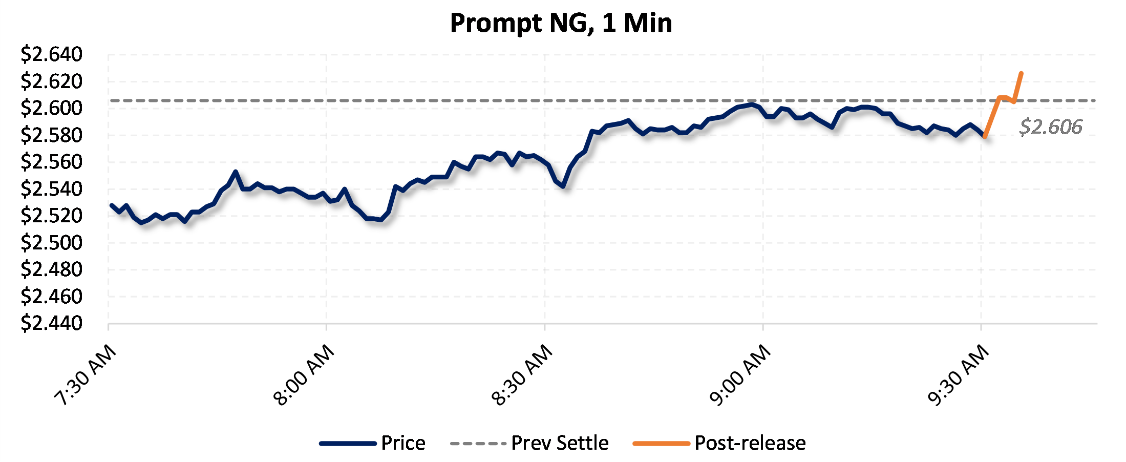Prices were up in the five minutes following the announcement, to $2.608, from $2.588 just before 9:30am.