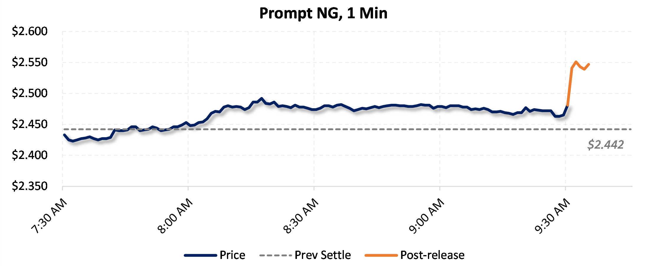 Prices were up in the five minutes following the announcement, to $2.561, from $2.463 just before 9:30am.