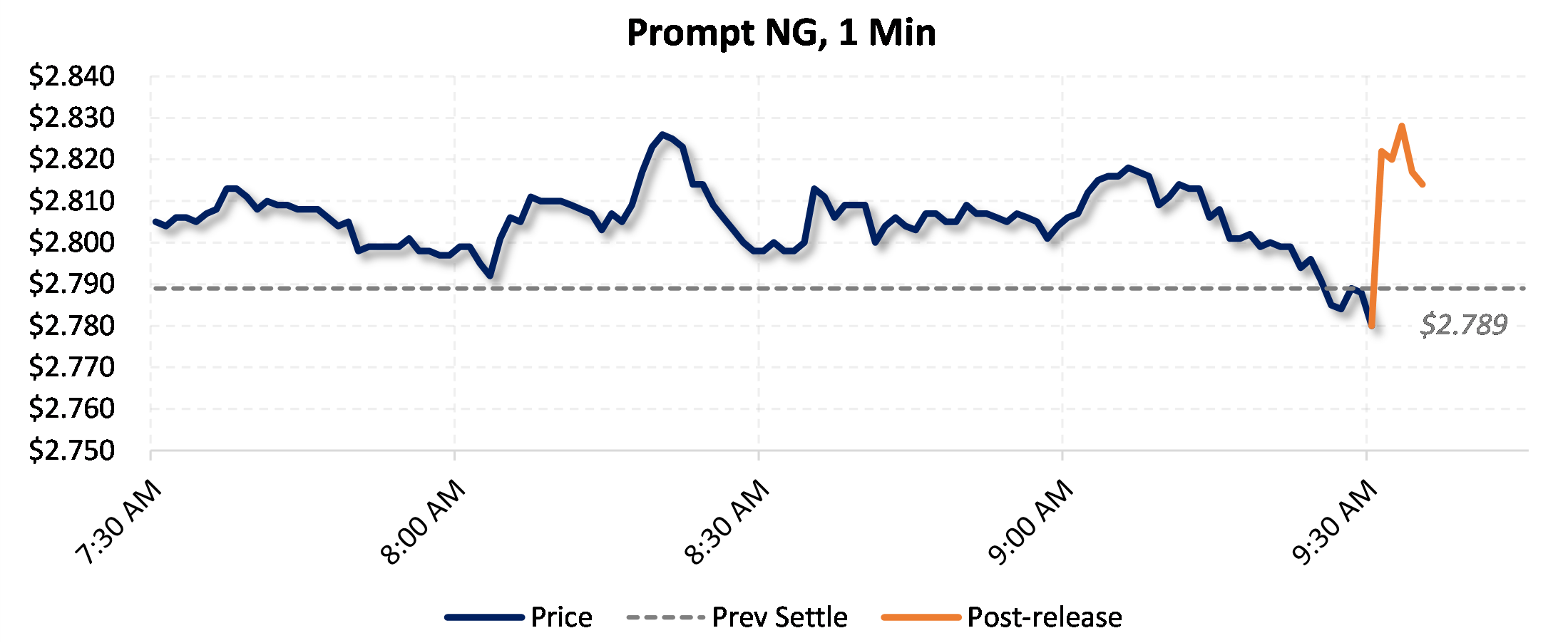 Prices were up in the five minutes following the announcement, to $2.81, from $2.789 just before 9:30am.