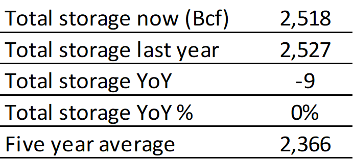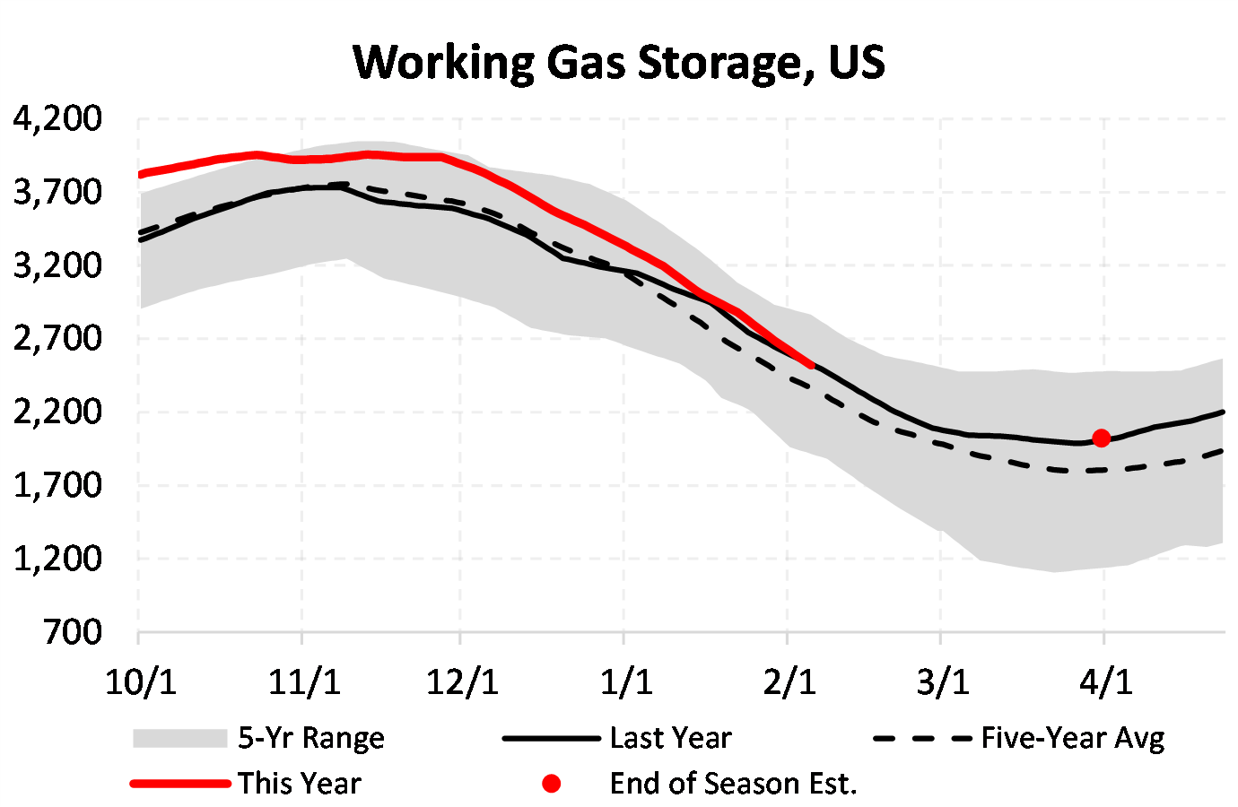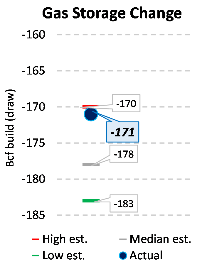 EIA reported a draw of -171 Bcf for the week ending 2/05/2021. This was smaller than the median estimate of -178 Bcf. Today's stat fell within the expected range, which was -170 Bcf on the more bearish end, and -183 Bcf on the more bullish end.