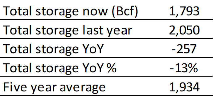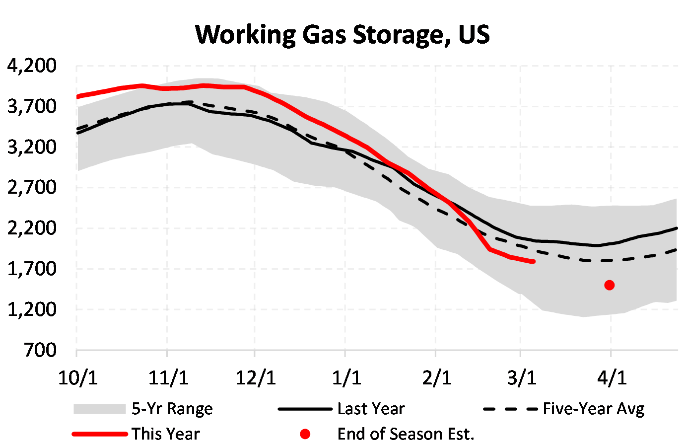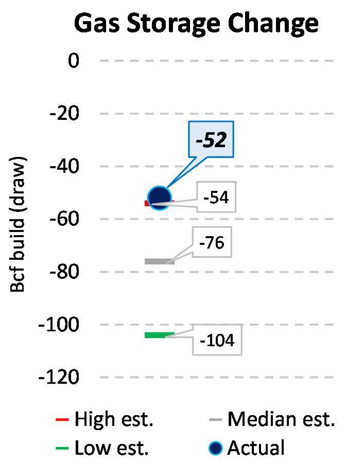 EIA reported a draw of -52 Bcf for the week ending 3/05/2021. This was smaller than the median estimate of -76 Bcf. Today's stat fell outside the expected range, which was -54 Bcf on the more bearish end, and -104 Bcf on the more bullish end.