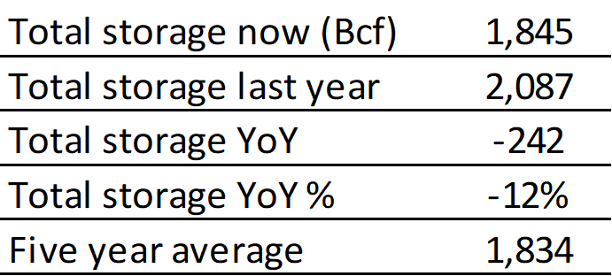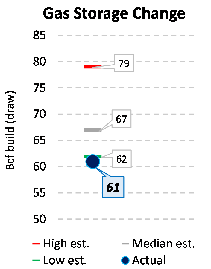 EIA reported a build of 61 Bcf for the week ending 4/09/2021. This was smaller than the median estimate of 67 Bcf. Today's stat fell outside the expected range, which was 79 Bcf on the more bearish end, and 62 Bcf on the more bullish end.