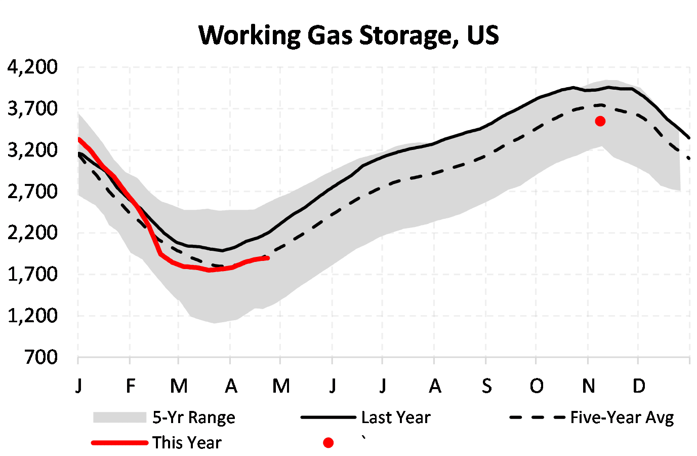 EIA reported a build of 15 Bcf for the week ending 4/23/2021. This was larger than the median estimate of 9 Bcf. Today's stat fell within the expected range, which was 19 Bcf on the more bearish end, and 6 Bcf on the more bullish