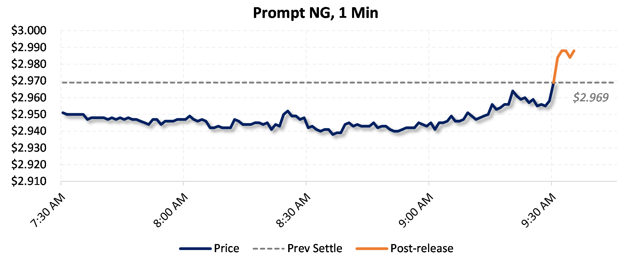 Prices were up in the five minutes following the announcement, to $2.987, from $2.955 just before 9:30am.