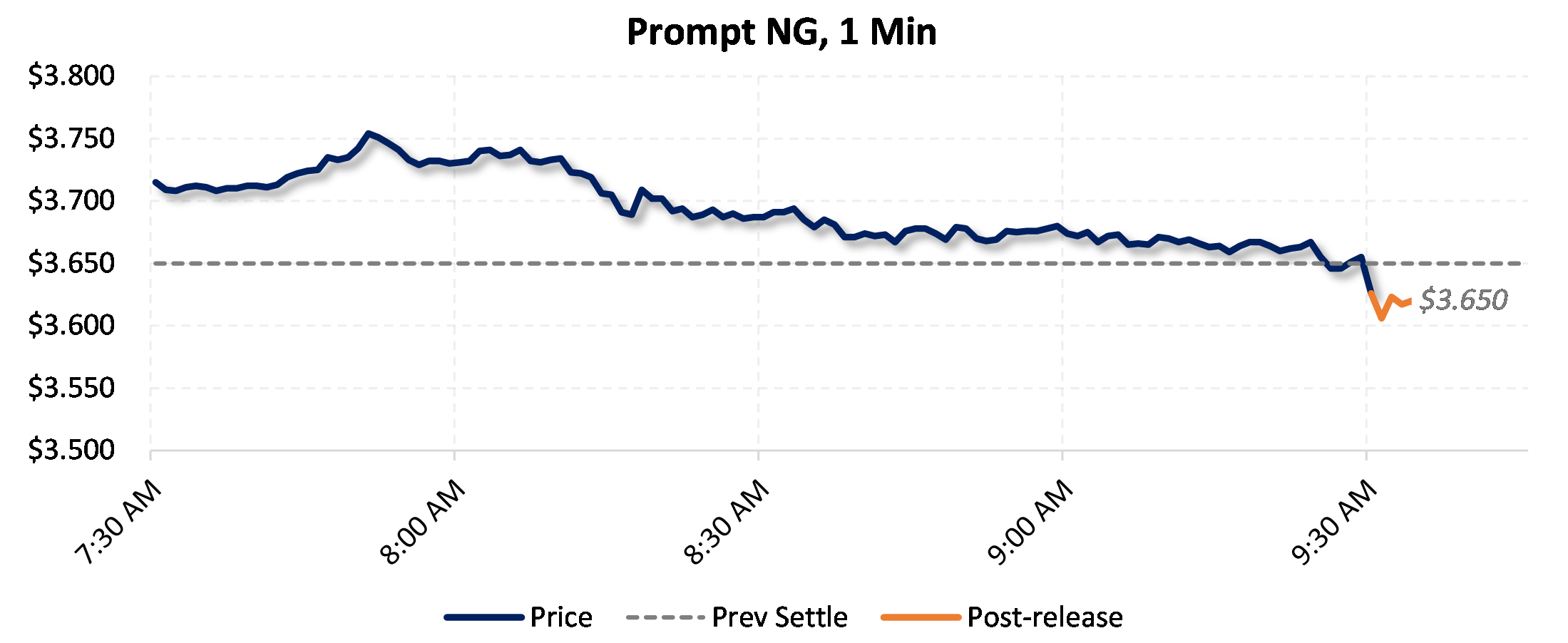 Prices were down in the five minutes following the announcement, to $3.616, from $3.651 just before 9:30am.