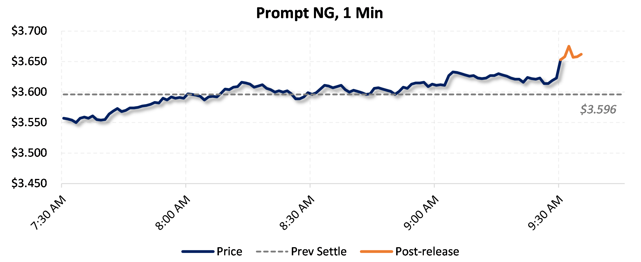 Prices were up in the five minutes following the announcement, to $3.666, from $3.619 just before 9:30am.