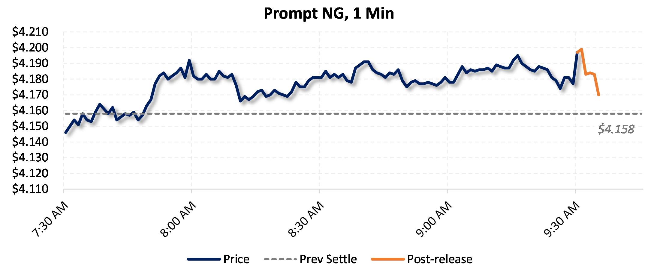 Prices were down in the five minutes following the announcement, to $4.155, from $4.181 just before 9:30am.