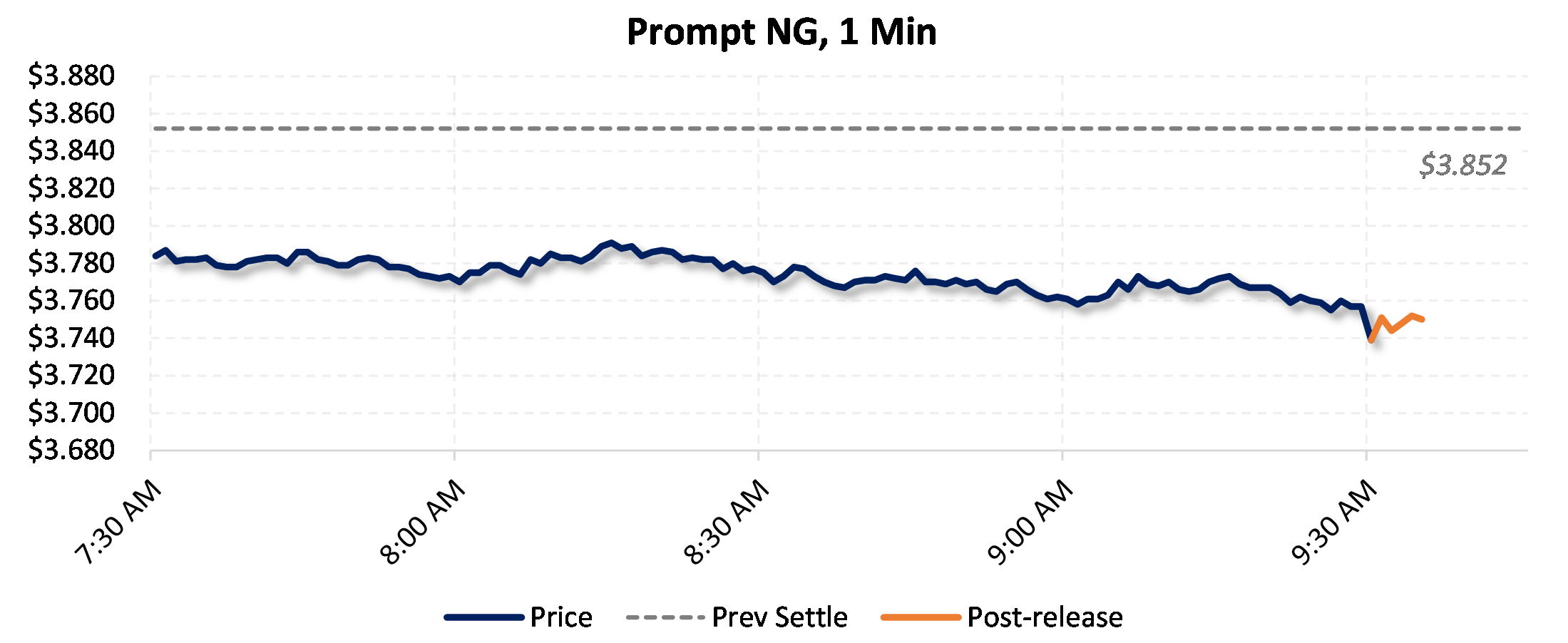 Prices were down in the five minutes following the announcement, to $3.745, from $3.757 just before 9:30am.