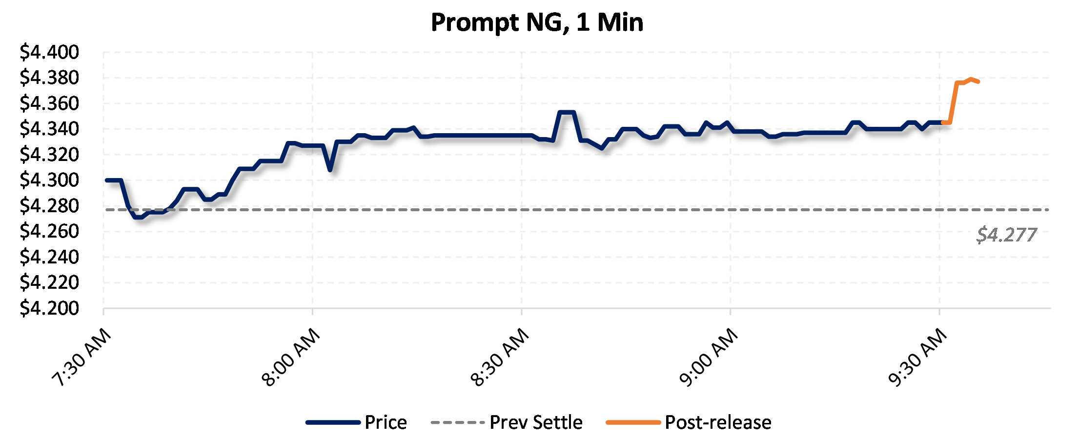 Prices were up in the five minutes following the announcement, to $4.403, from $4.345 just before 9:30am.