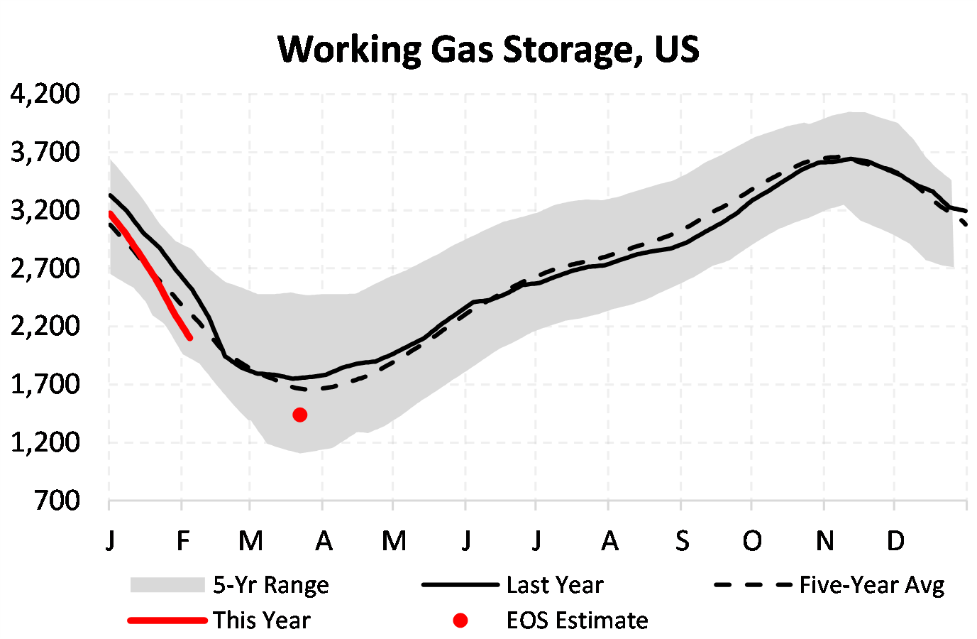 EIA reported a draw of -222 Bcf for the week ending 2/04/2022. This was equal to the median estimate of -222 Bcf. Today's stat fell within the expected range, which was -202 Bcf on the more bearish end, and -232 Bcf on the more bullish end.