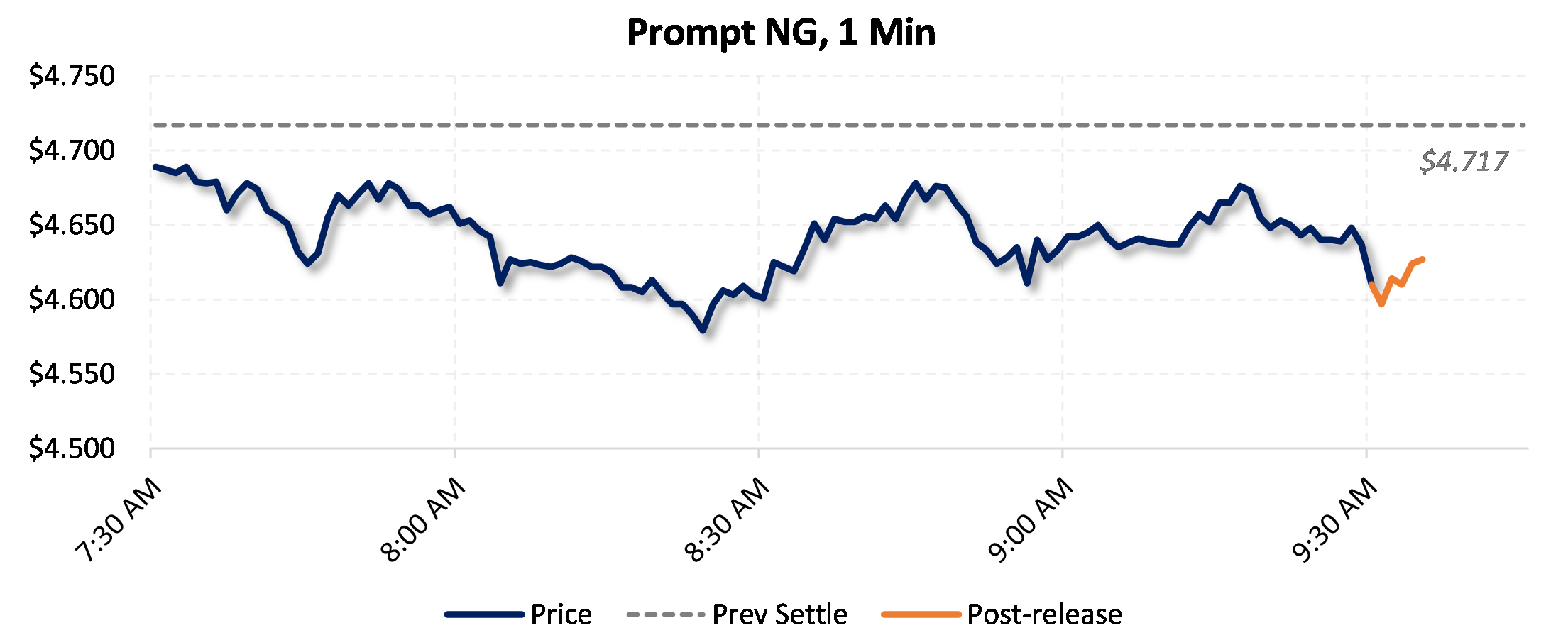 Prices were down in the five minutes following the announcement, to $4.632, from $4.648 just before 9:30am.