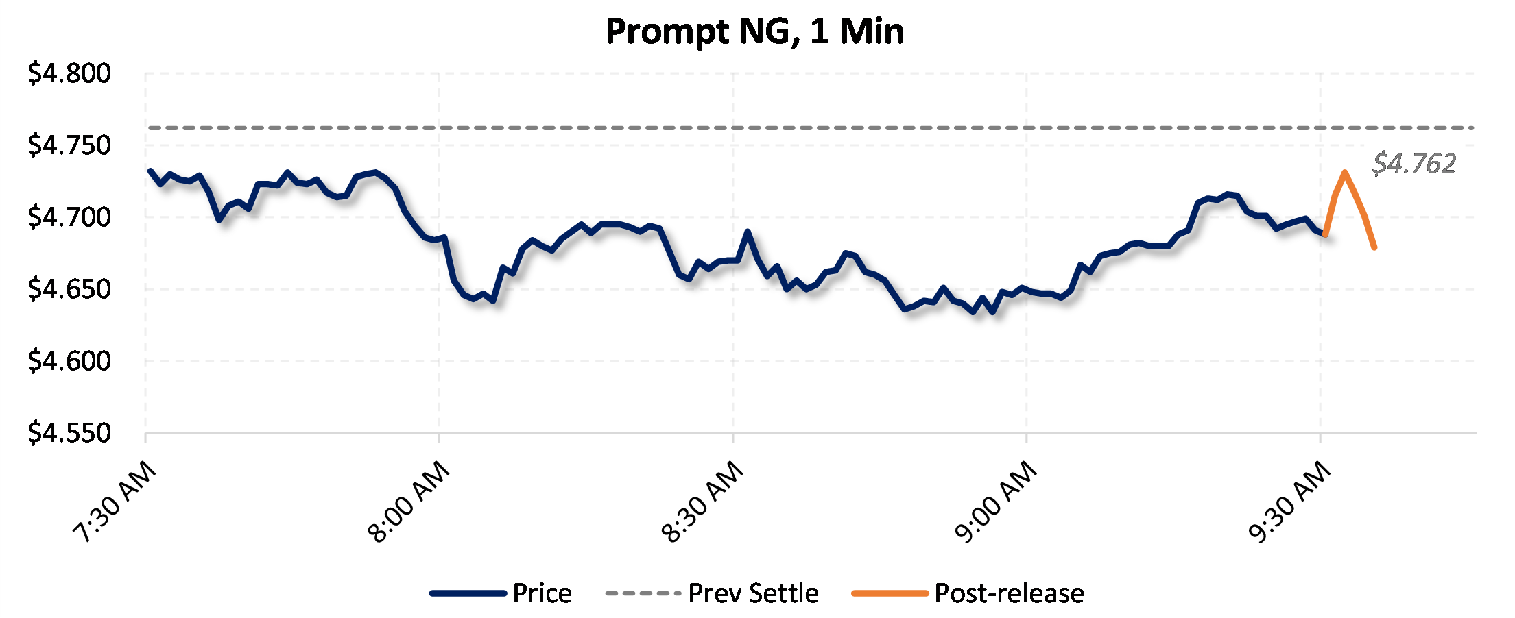 Prices were up in the five minutes following the announcement, to $4.711, from $4.699 just before 9:30am.