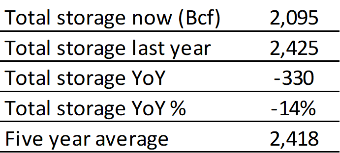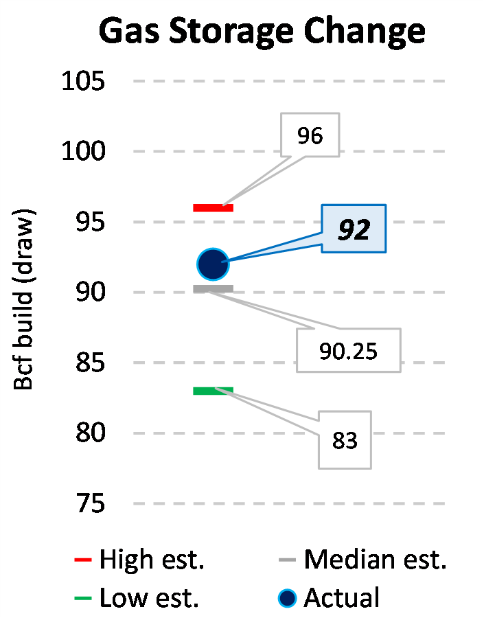 EIA reported a build of 92 Bcf for the week ending 6/10/2022. This was larger than the median estimate of 90.25 Bcf. Today's stat fell within the expected range, which was 96 Bcf on the more bearish end, and 83 Bcf on the more bullish end.