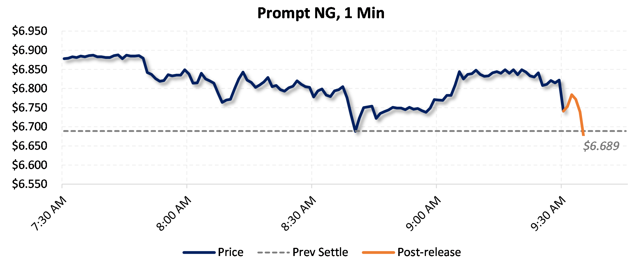 Prices were down in the five minutes following the announcement, to $6.574, from $6.815 just before 9:30am.
