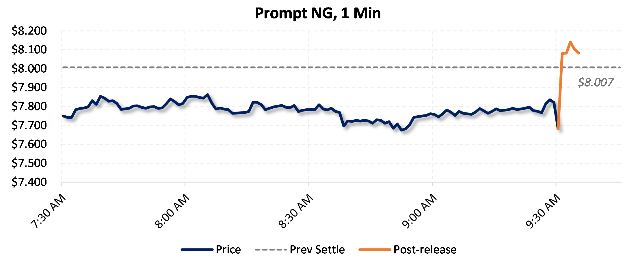 Prices were up in the five minutes following the announcement, to $8.115, from $7.836 just before 9:30am.