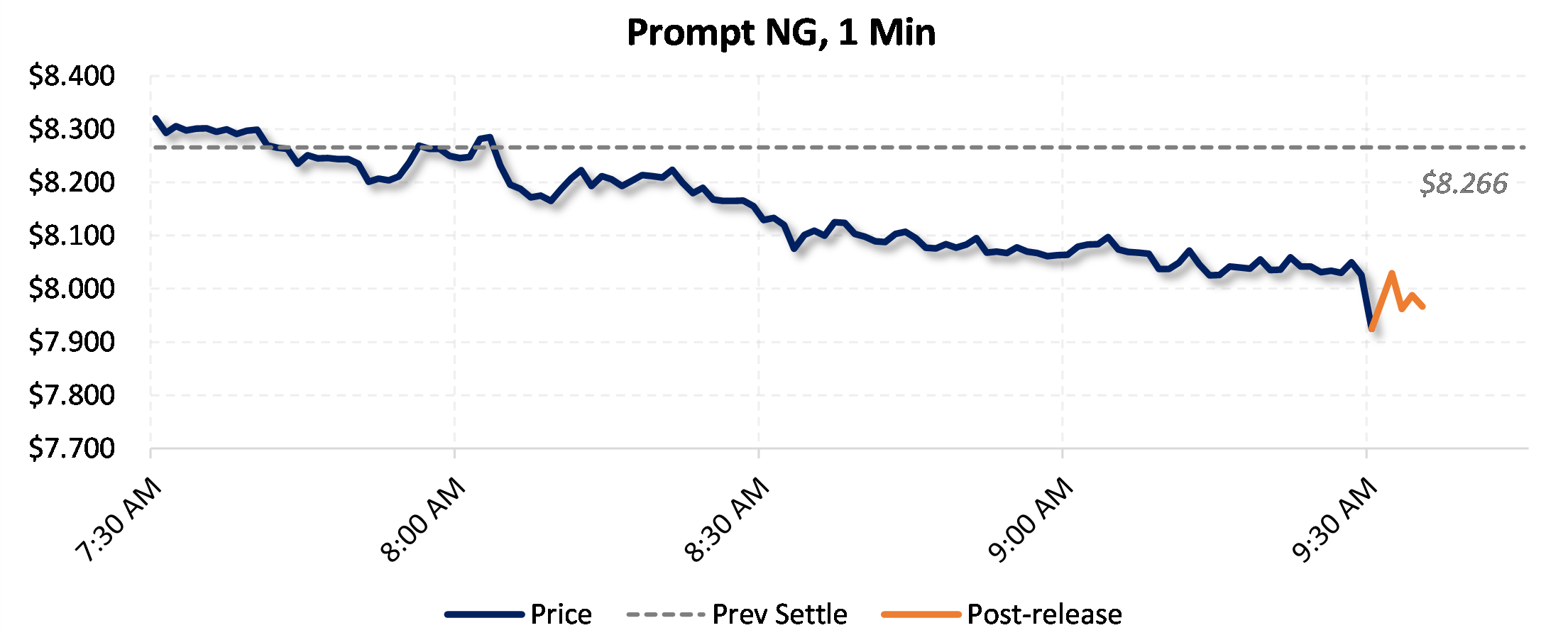 Prices were down in the five minutes following the announcement, to $7.965, from $8.05 just before 9:30am.
