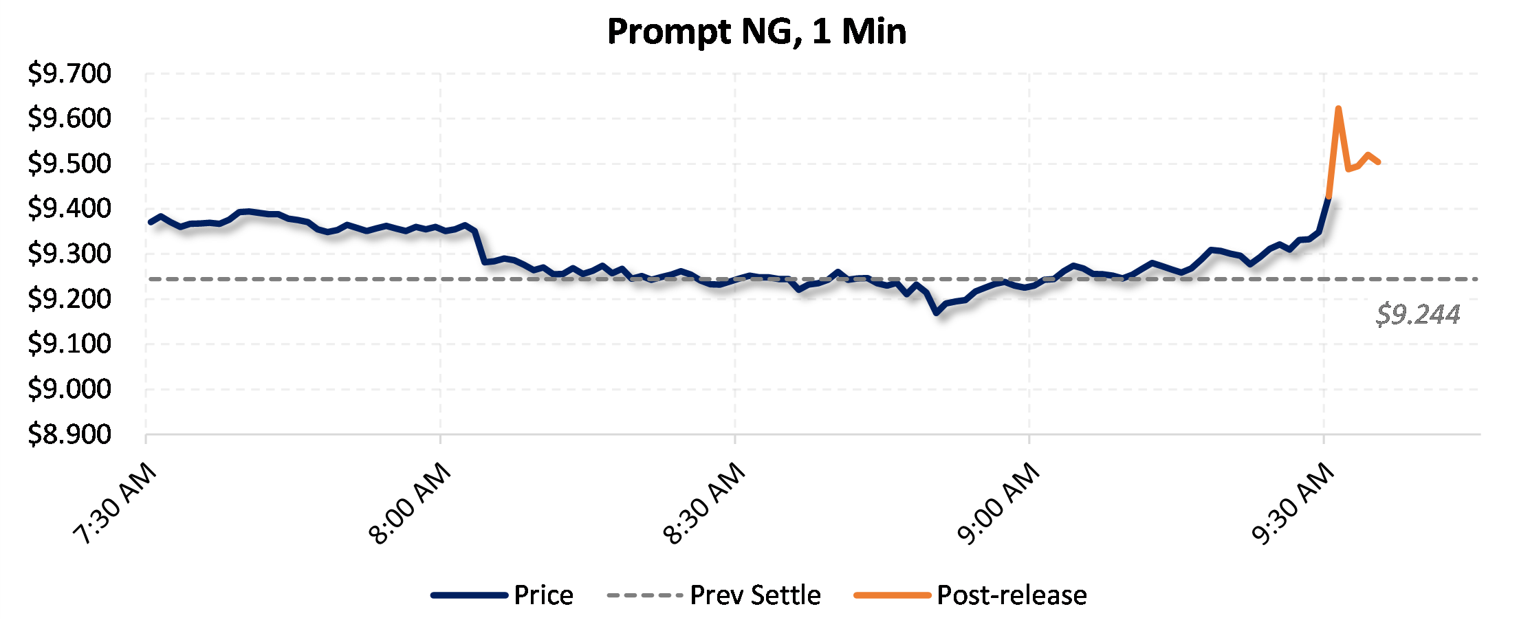Prices were up in the five minutes following the announcement, to $9.509, from $9.333 just before 9:30am.
