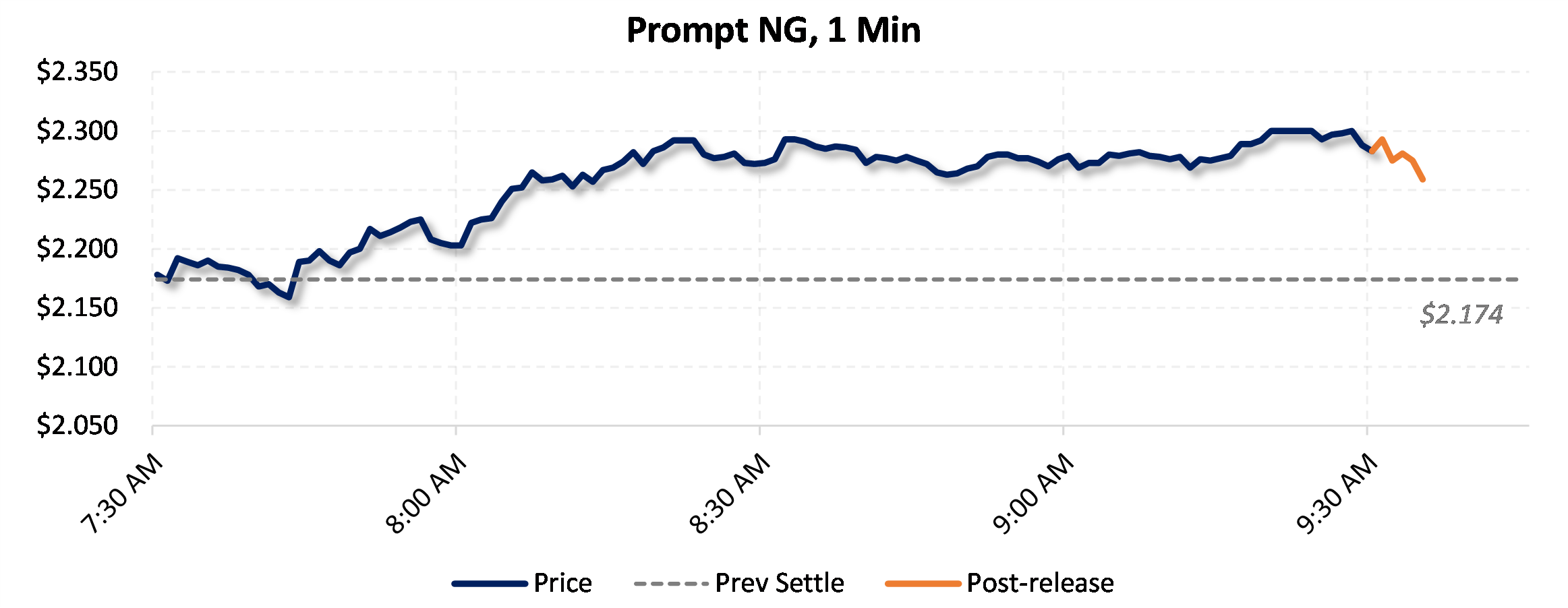 Prices were down in the five minutes following the announcement, to $2.276, from $2.3 just before 9:30am.