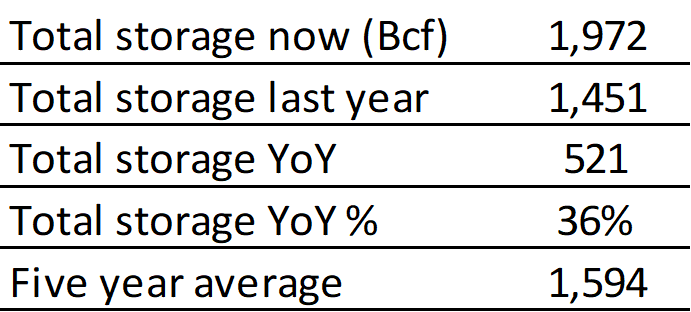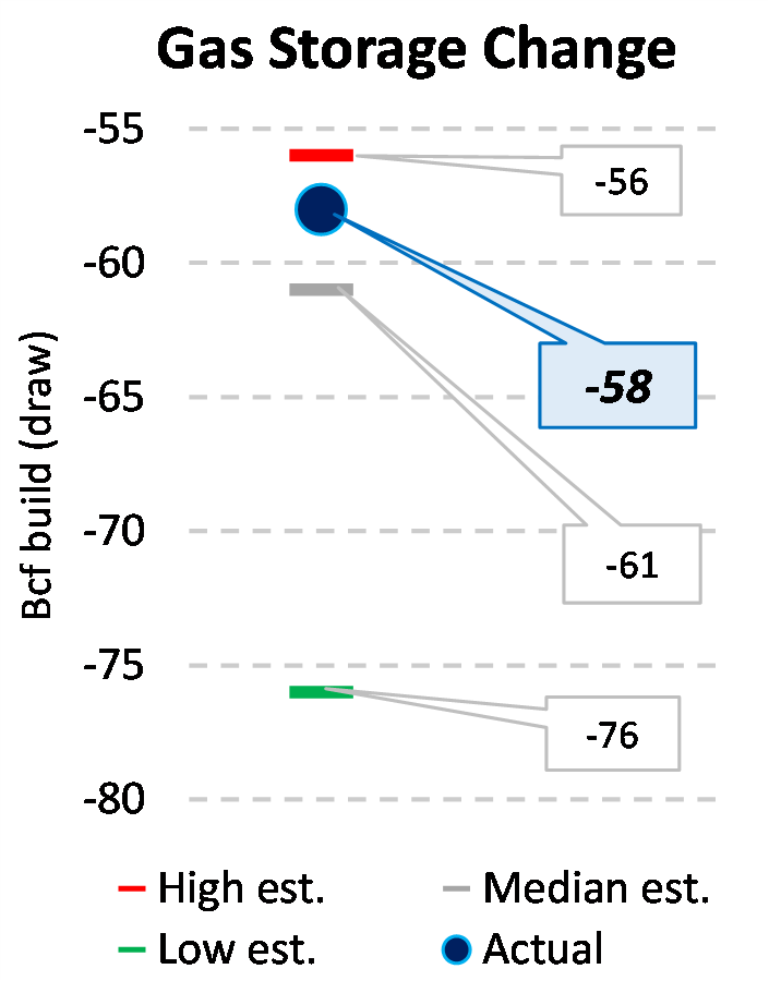 EIA reported a draw of -58 Bcf for the week ending 3/10/2023. This was smaller than the median estimate of -61 Bcf. Today's stat fell within the expected range, which was -56 Bcf on the more bearish end, and -76 Bcf on the more bullish end.