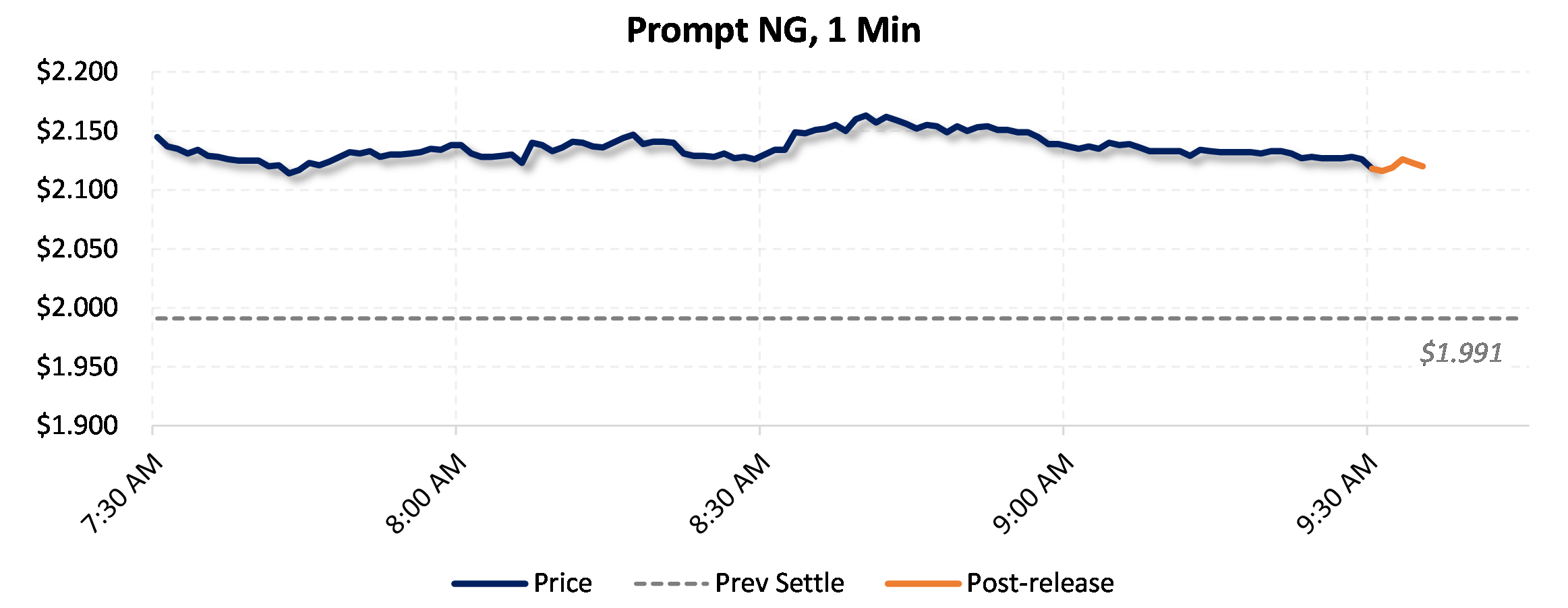 Prices were down in the five minutes following the announcement, to $2.117, from $2.128 just before 9:30am.