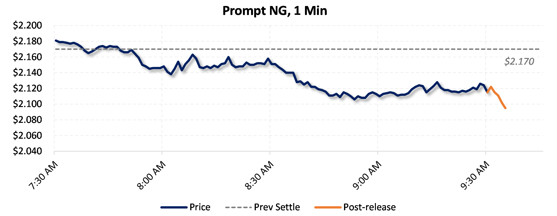 Prices were down in the five minutes following the announcement, to $2.094, from $2.126 just before 9:30am.