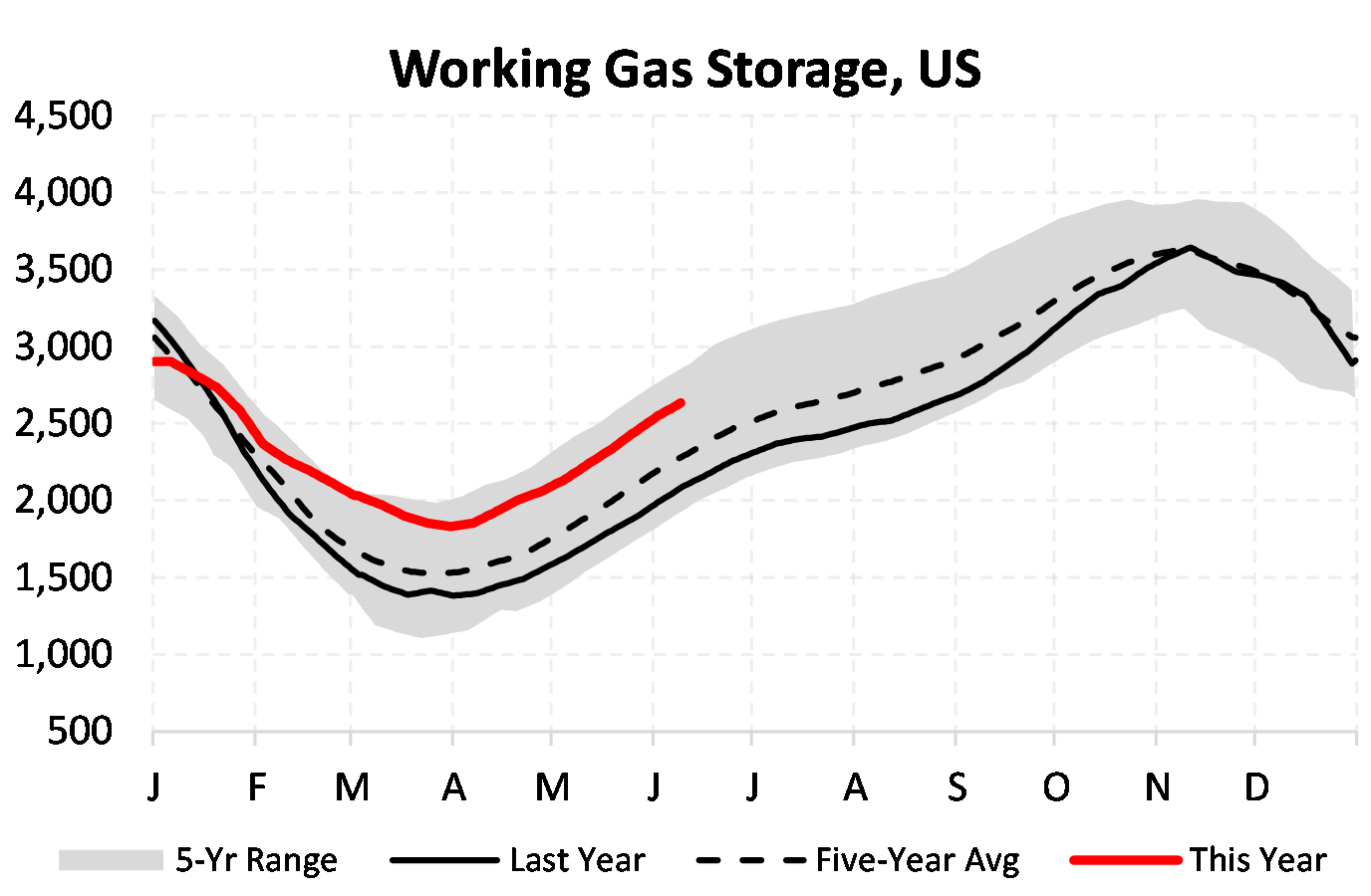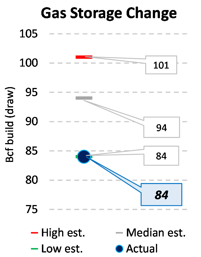 EIA reported a build of 84 Bcf for the week ending 6/09/2023. This was smaller than the median estimate of 94 Bcf. Today's stat fell within the expected range, which was 101 Bcf on the more bearish end, and 84 Bcf on the more bullish end.