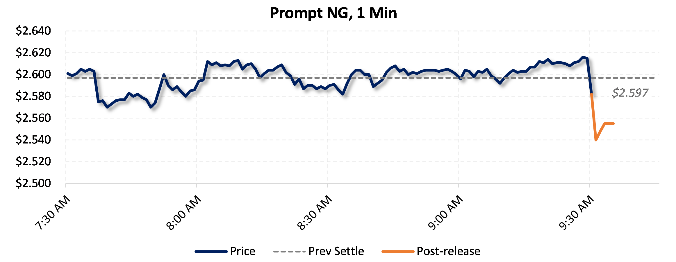 Prices were down in the five minutes following the announcement, to $2.541, from $2.616 just before 9:30am.
