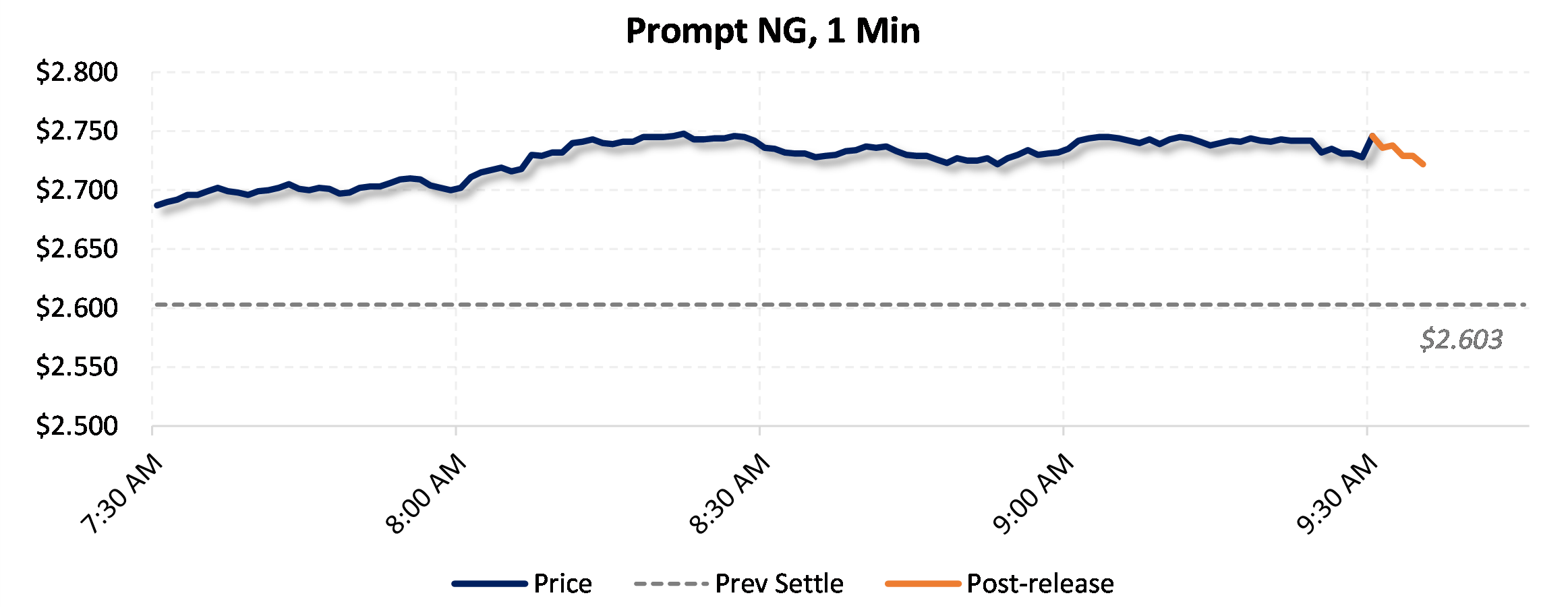 Prices were up in the five minutes following the announcement, to $2.739, from $2.731 just before 9:30am.