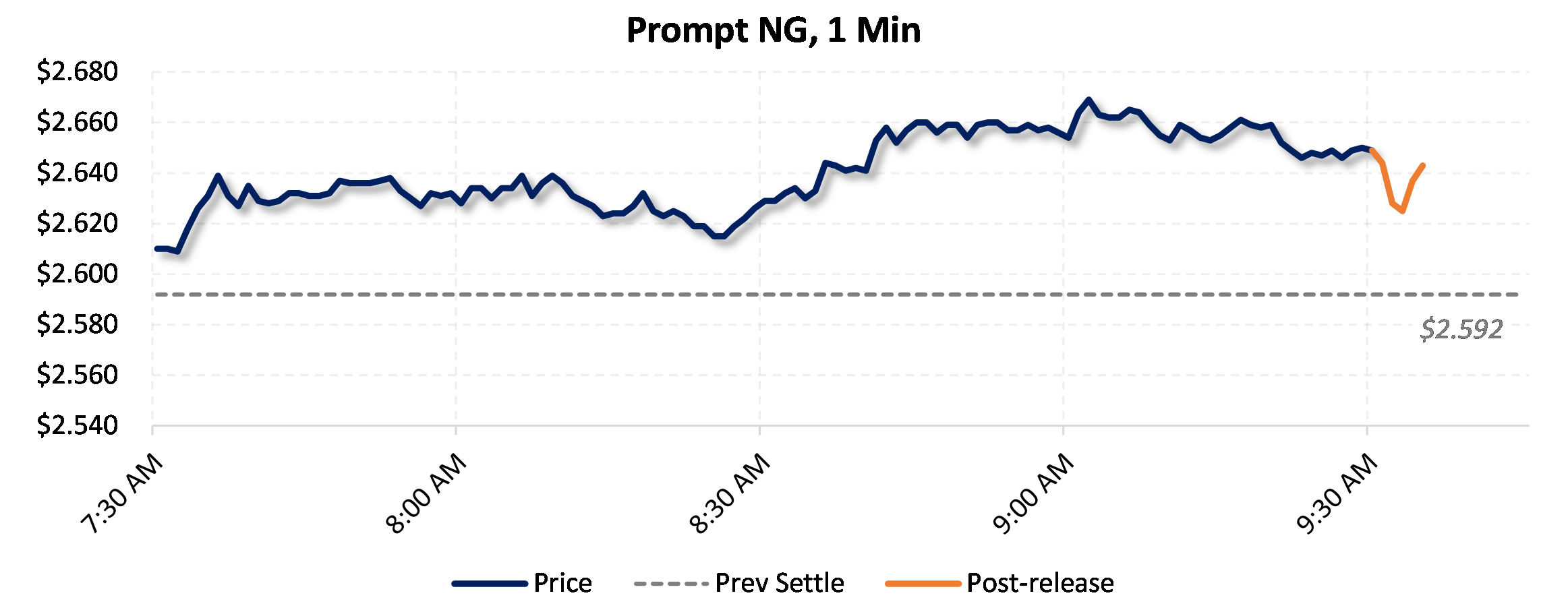 Prices were down in the five minutes following the announcement, to $2.637, from $2.649 just before 9:30am.