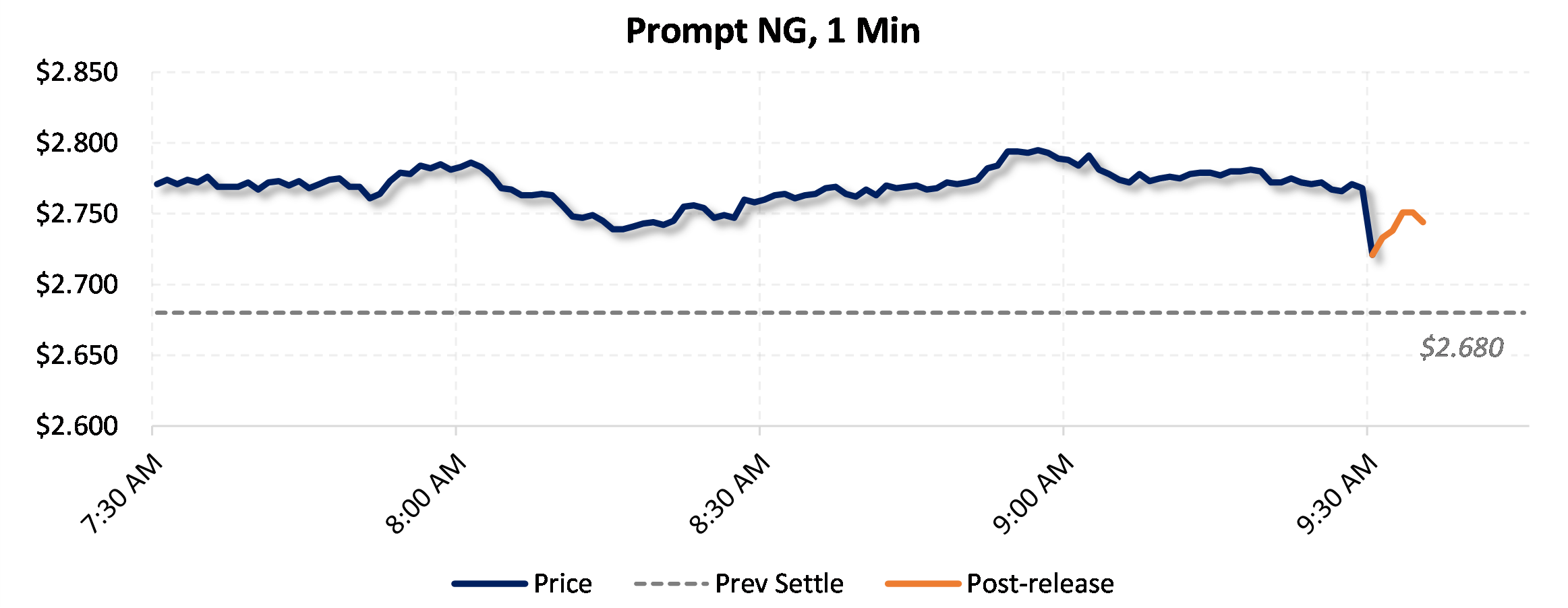 Prices were down in the five minutes following the announcement, to $2.748, from $2.771 just before 9:30am.