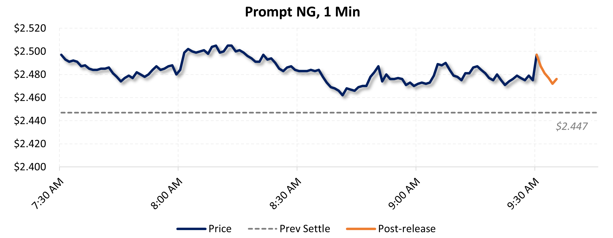 Prices were up in the five minutes following the announcement, to $2.535, from $2.479 just before 9:30am.