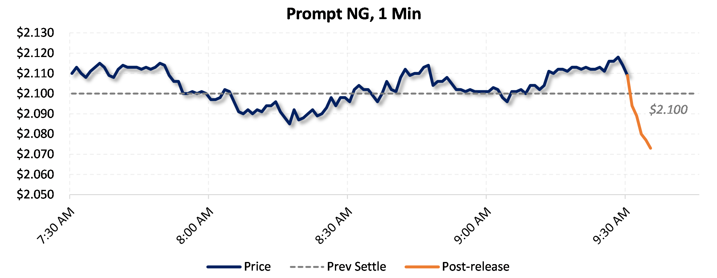 Prices were down in the five minutes following the announcement, to $2.09, from $2.118 just before 9:30am.