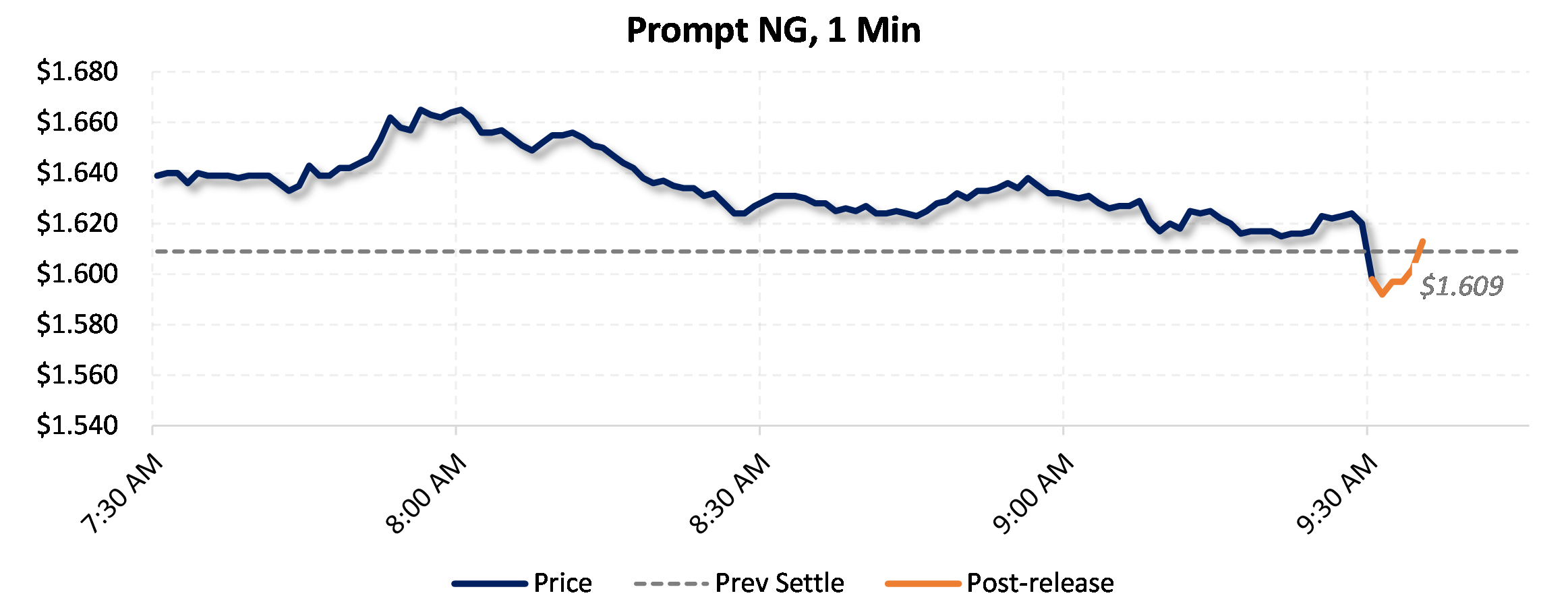 Prices were down in the five minutes following the announcement, to $1.598, from $1.624 just before 9:30am.
