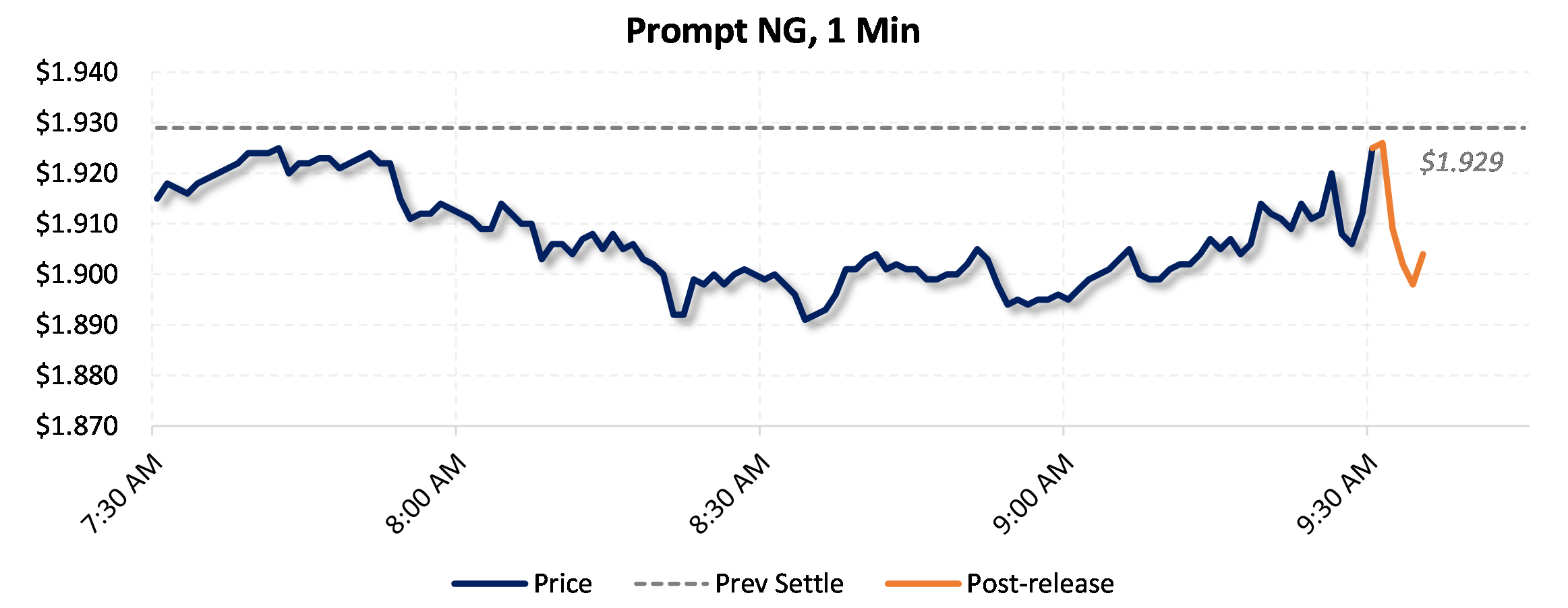 Prices were down in the five minutes following the announcement, to $1.877, from $1.906 just before 9:30am.