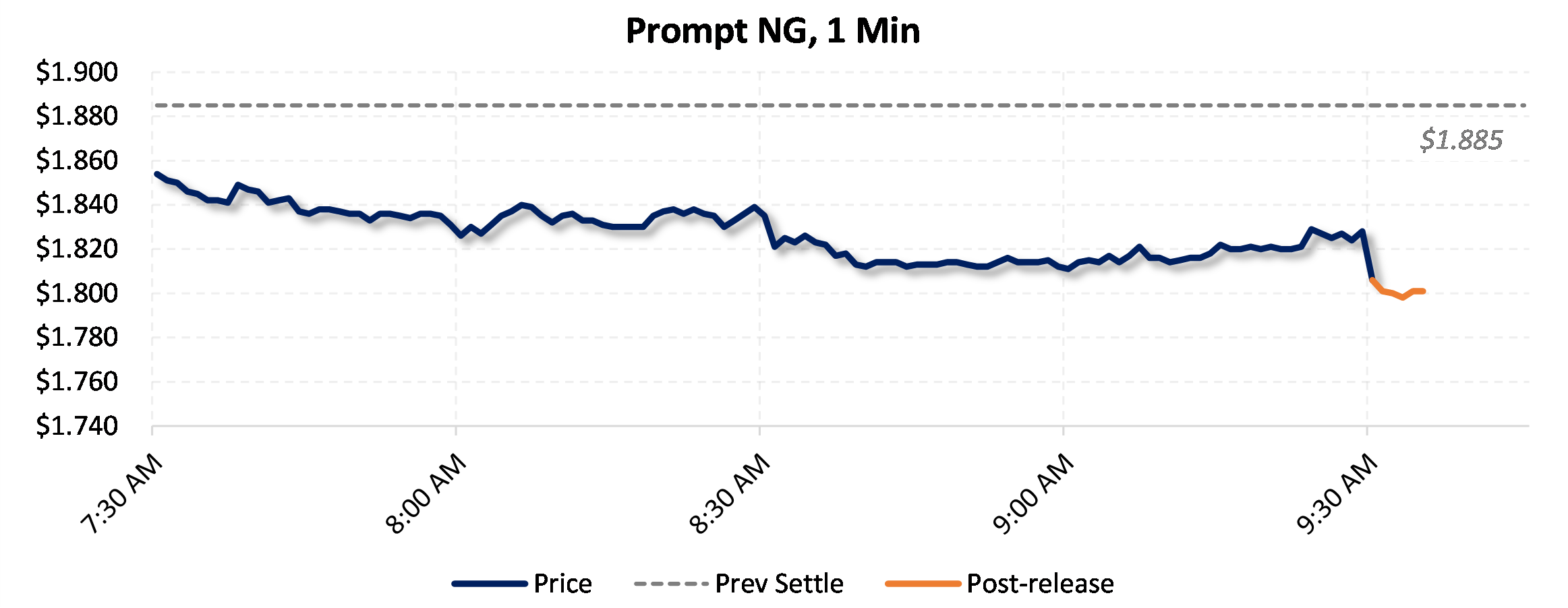 Prices were down in the five minutes following the announcement, to $1.798, from $1.824 just before 9:30am.