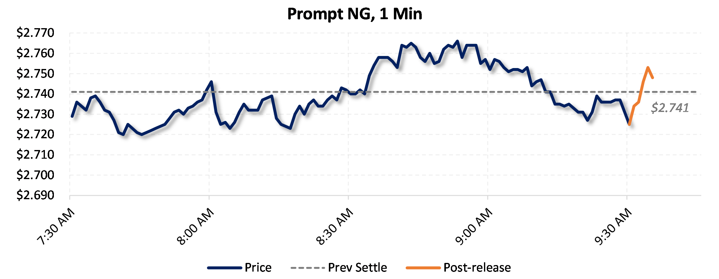 Prices were down in the five minutes following the announcement, to $2.701, from $2.737 just before 9:30am.