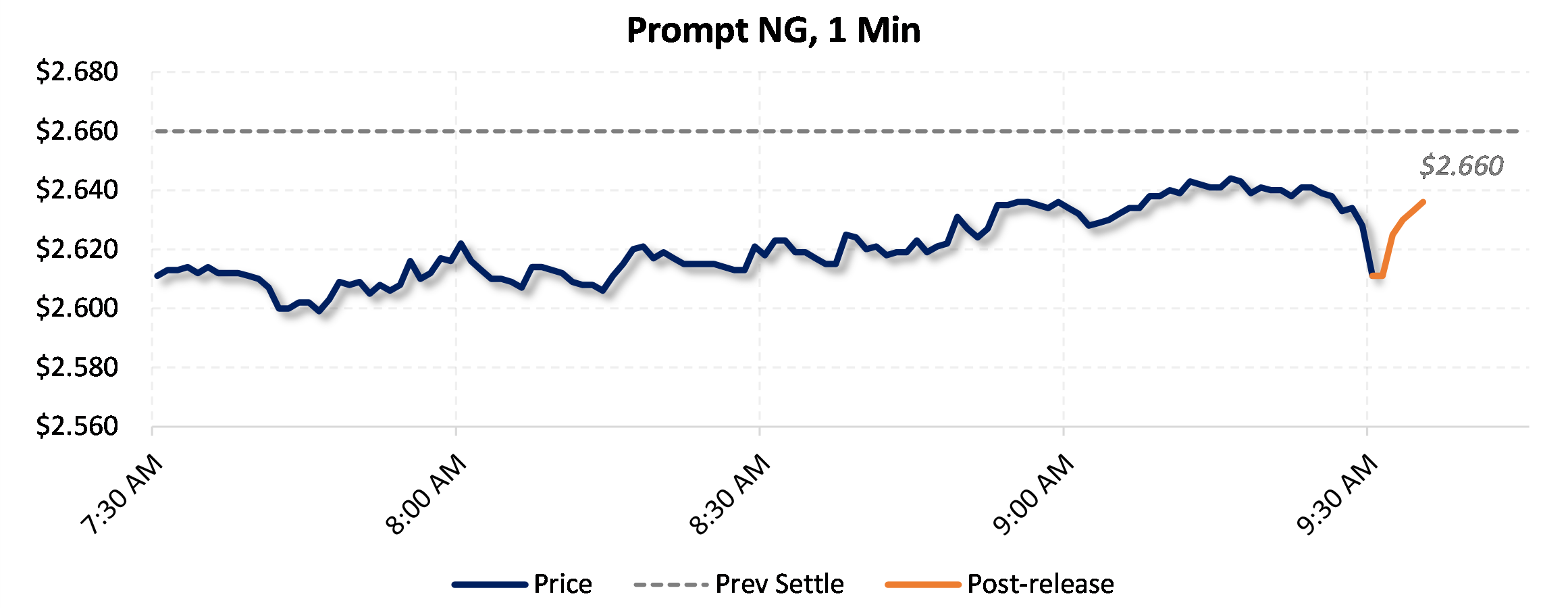 Prices were down in the five minutes following the announcement, to $2.632, from $2.634 just before 9:30am.