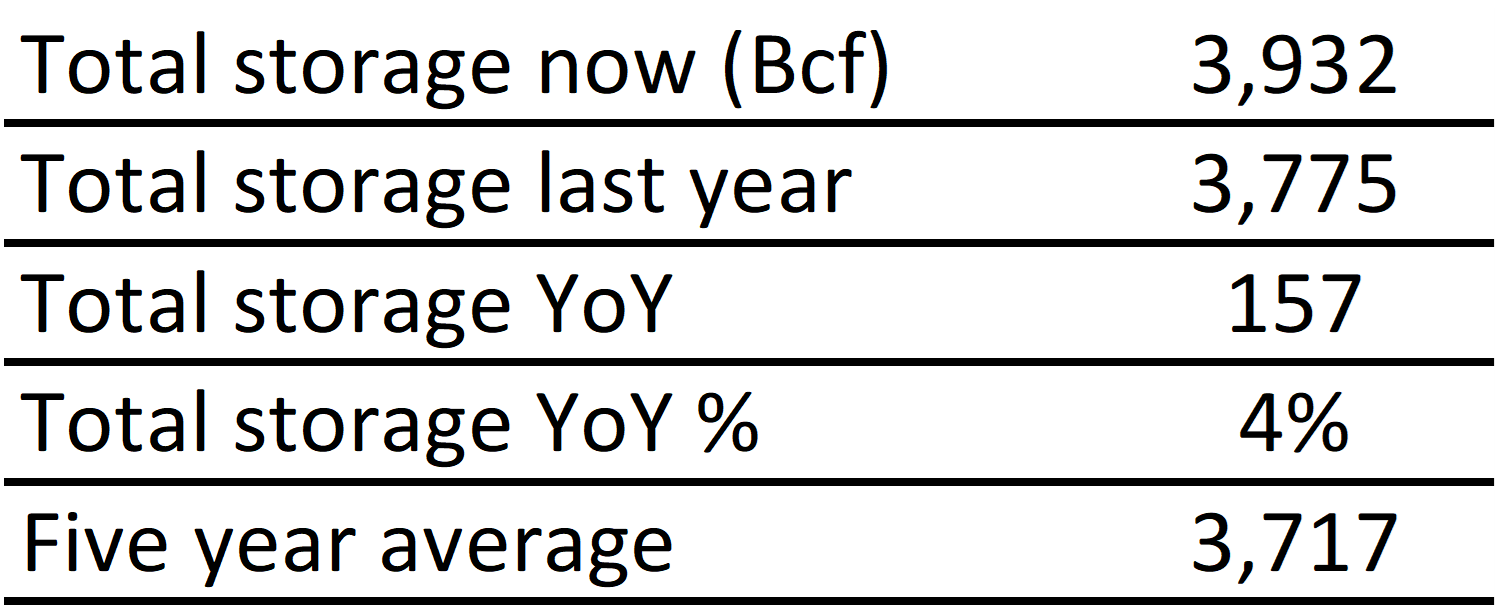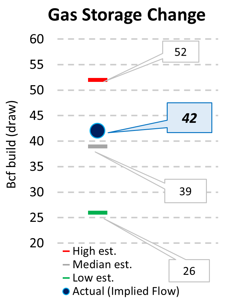 EIA reported a build of 42 Bcf for the week ending 11/08/2024. This was larger than the median estimate of 39 Bcf. Today's stat fell within the expected range, which was 52 Bcf on the more bearish end, and 26 Bcf on the more bullish end.