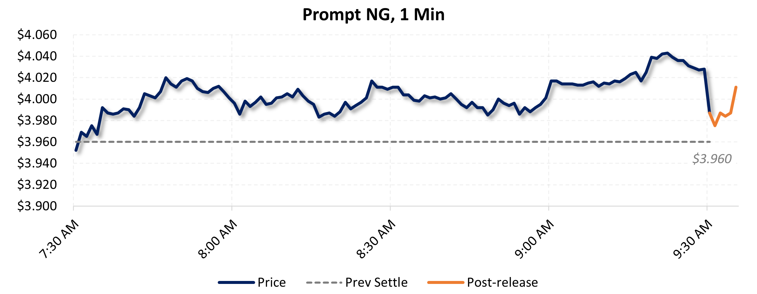Prices were down in the five minutes following the announcement, to $4.011, from $4.028 just before 9:30am.