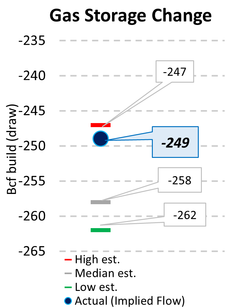 EIA reported a draw of -249 Bcf for the week ending 2/06/2026. This was smaller than the median estimate of -258 Bcf. Today's stat fell within the expected range, which was -247 Bcf on the more bearish end, and -262 Bcf on the more bullish end.