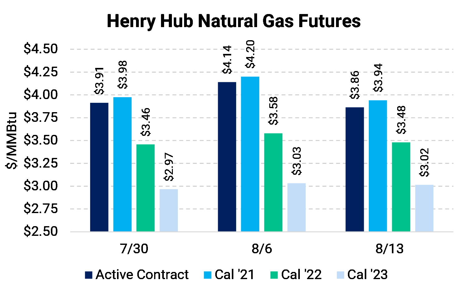 Hedging recommendations remain swaps in the near term due to demand recovery risk. For 2022 and beyond, costless collars remain our suggestion as the curve remains steeply backwardated, and we believe the market will realize higher than the curve.