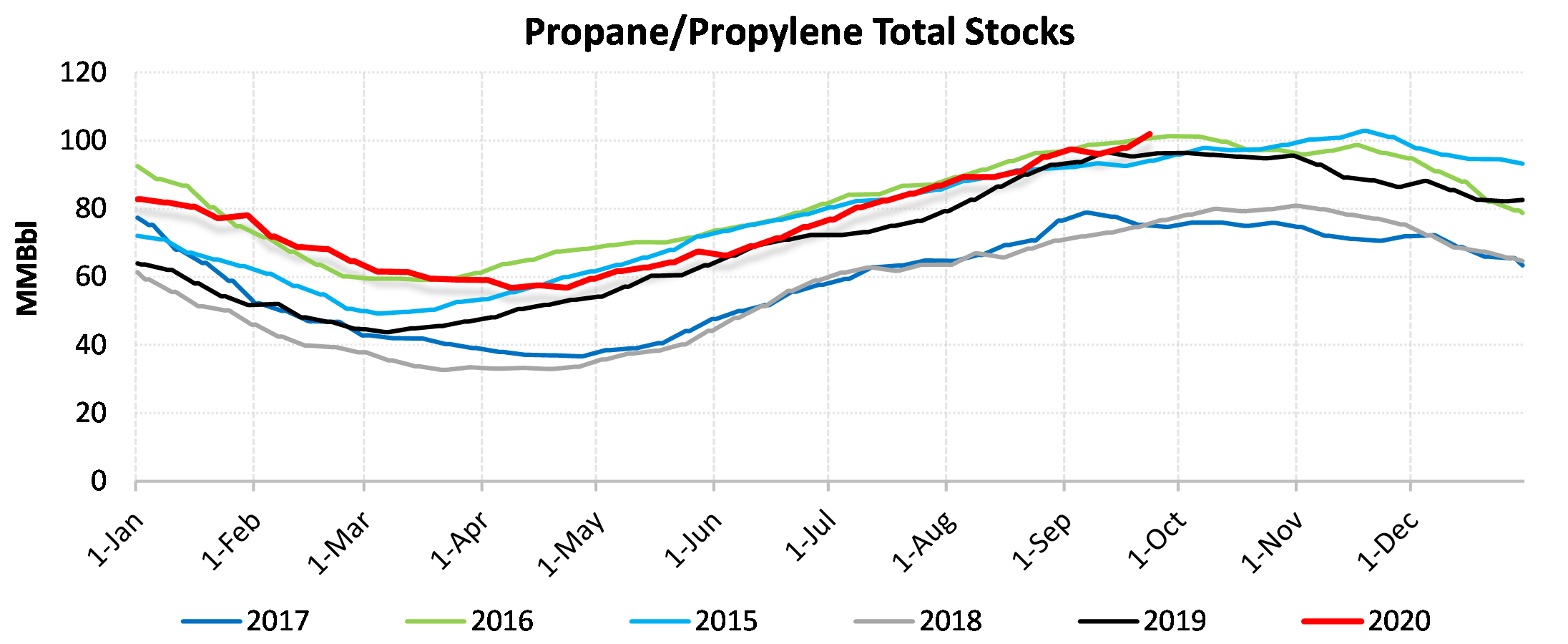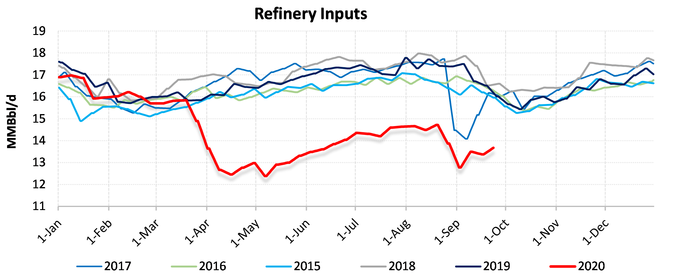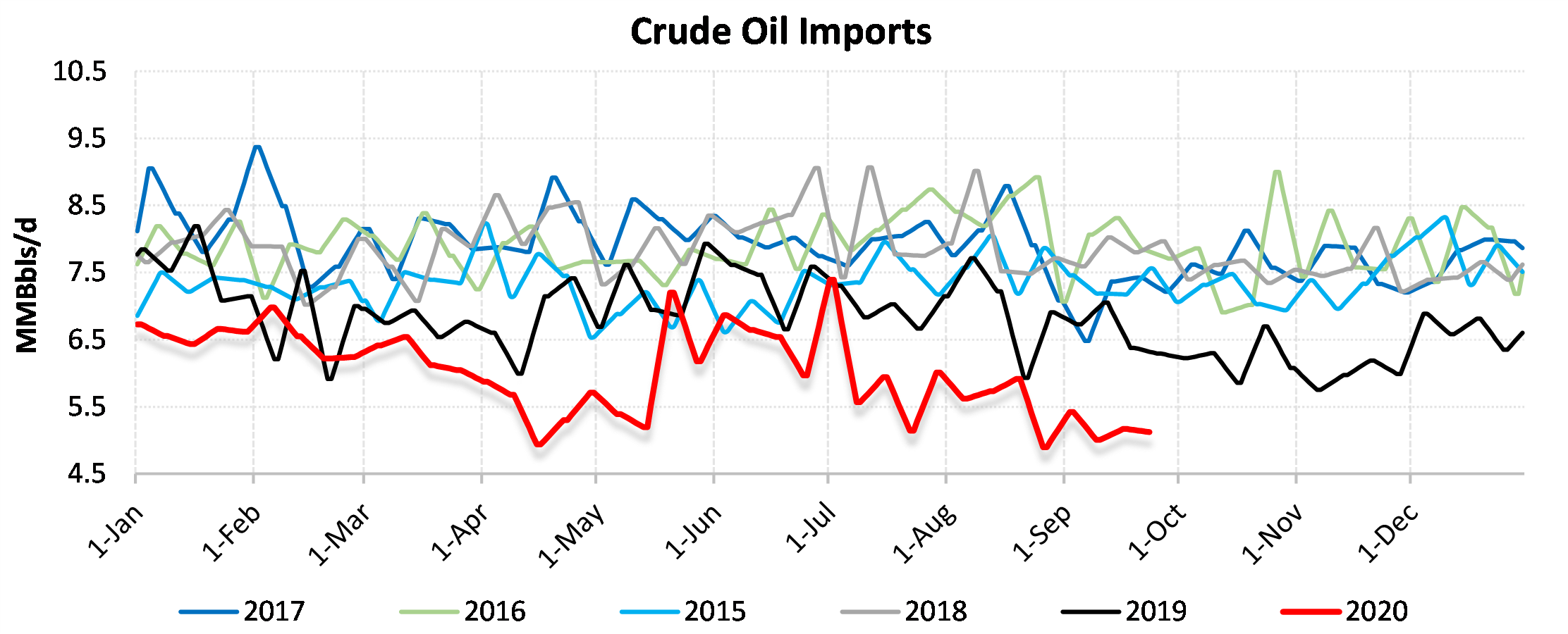 EIA reported a build of 501 MBbls in U.S. crude-oil inventories for the week ending 10/2/2020. This was smaller than the average estimate of -880 MBbls as reported by Bloomberg.