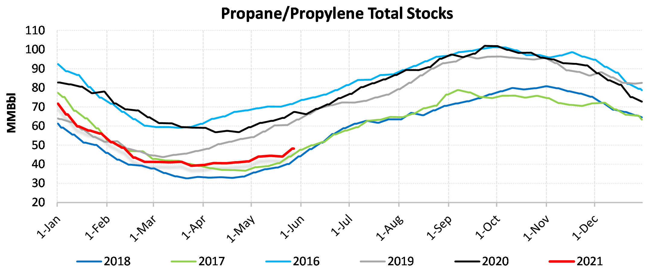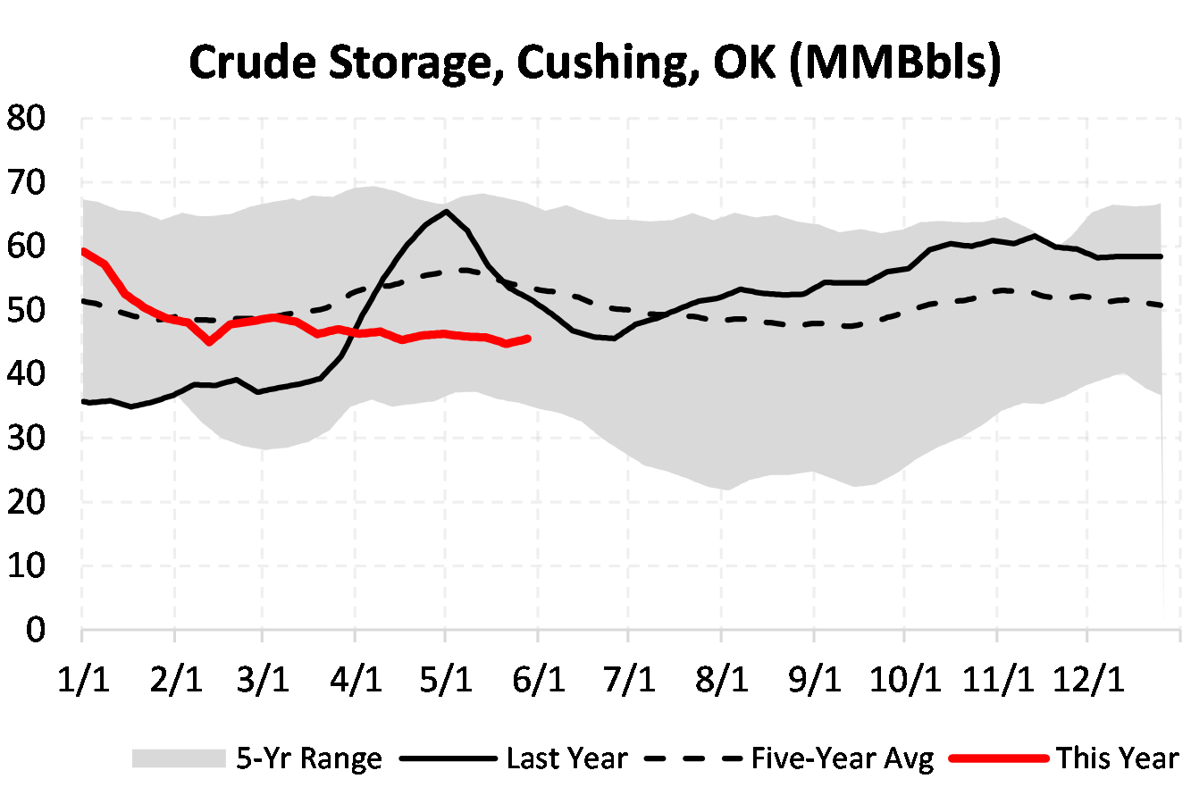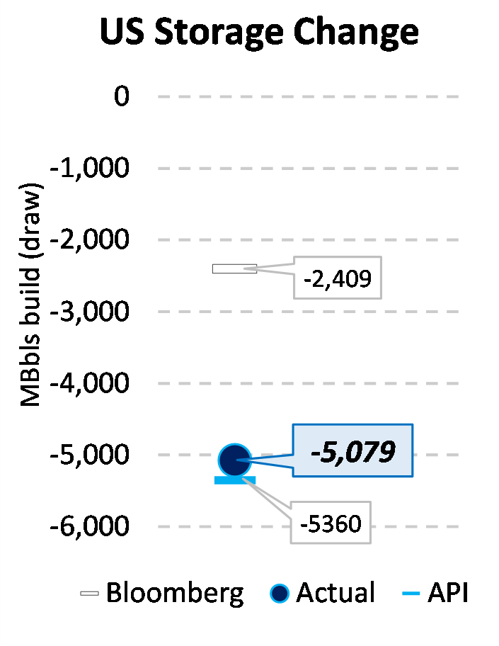 EIA reported a draw of -5079 MBbls in U.S. crude-oil inventories for the week ending 5/28/2021. This was larger than the average estimate of -2409 MBbls as reported by Bloomberg.