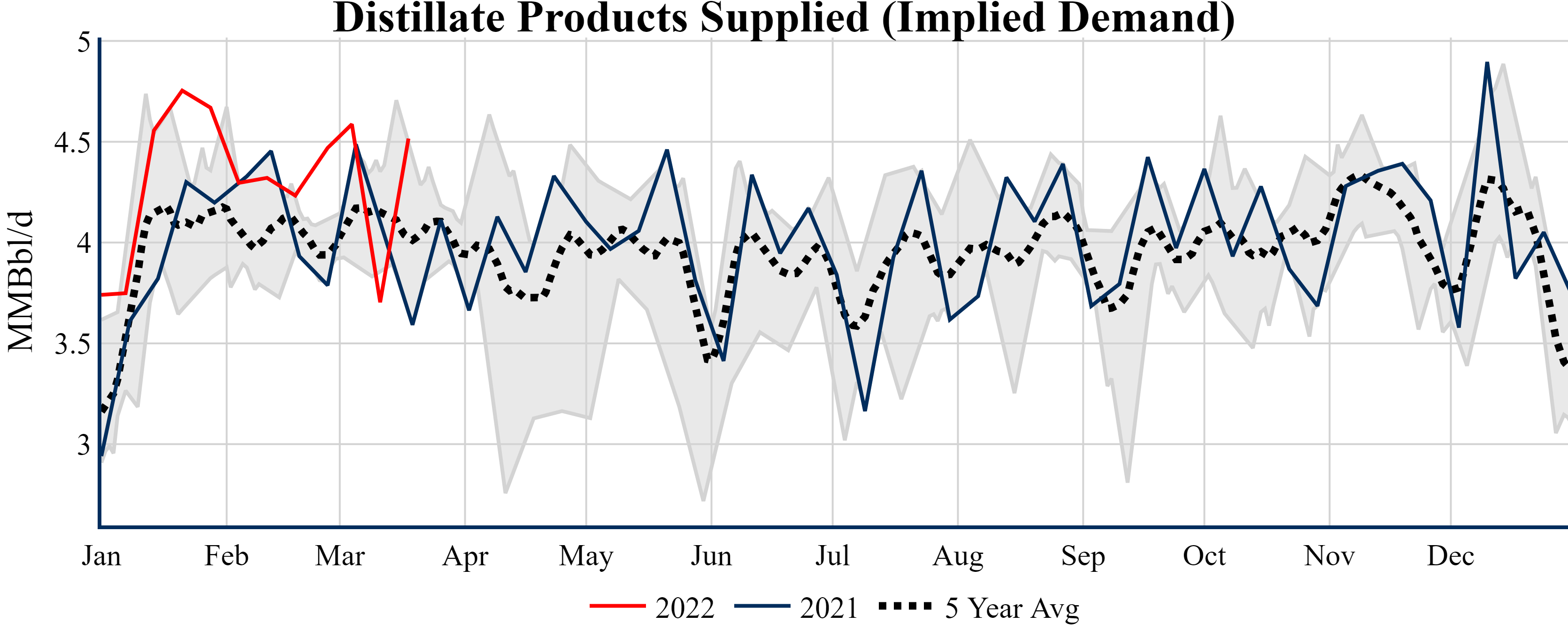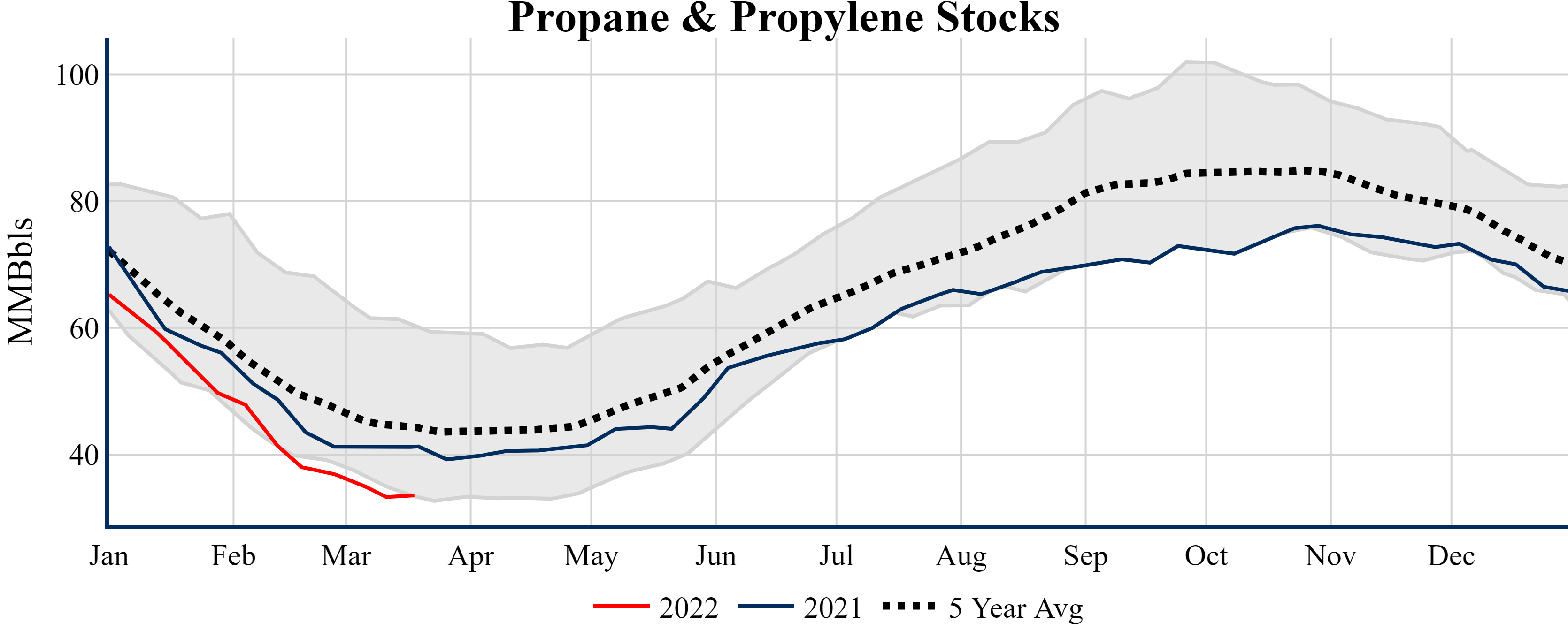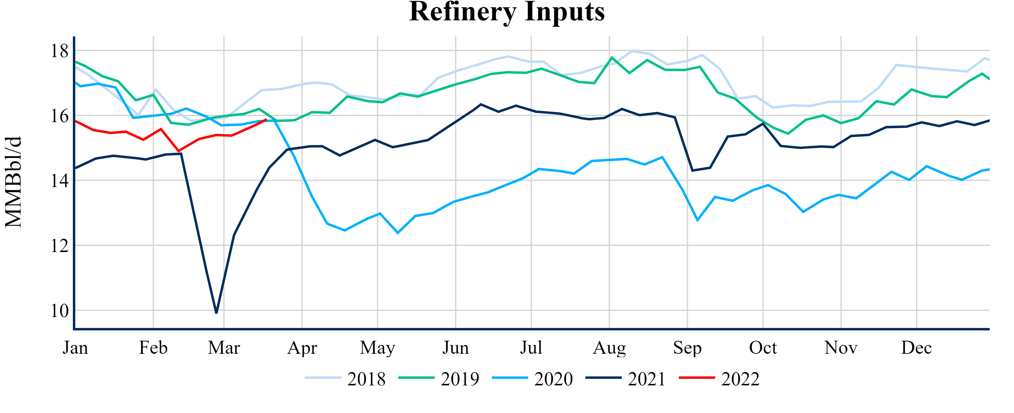 Inventories for the U.S. are now at a deficit of 89.00 MMBbls (-17.7%) to last year, and a deficit of 58.60 MMBbls (-12.4%) to the five-year average.