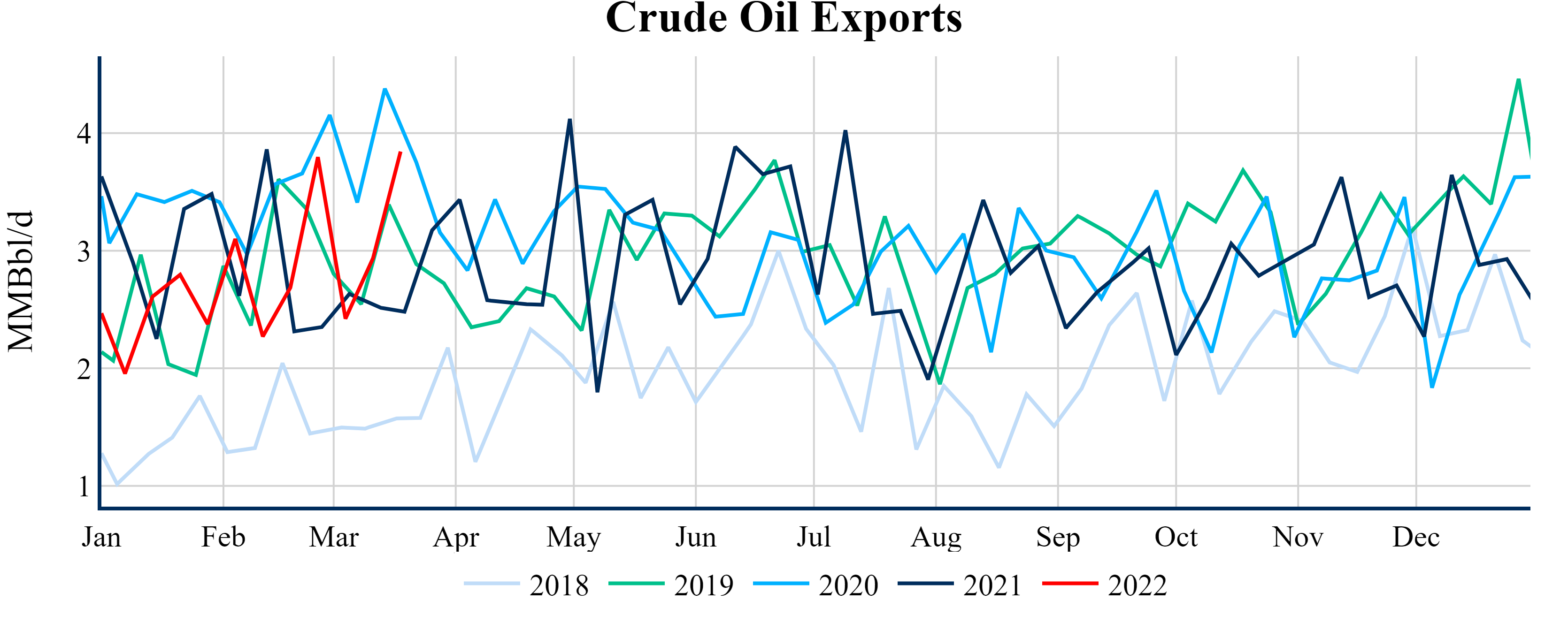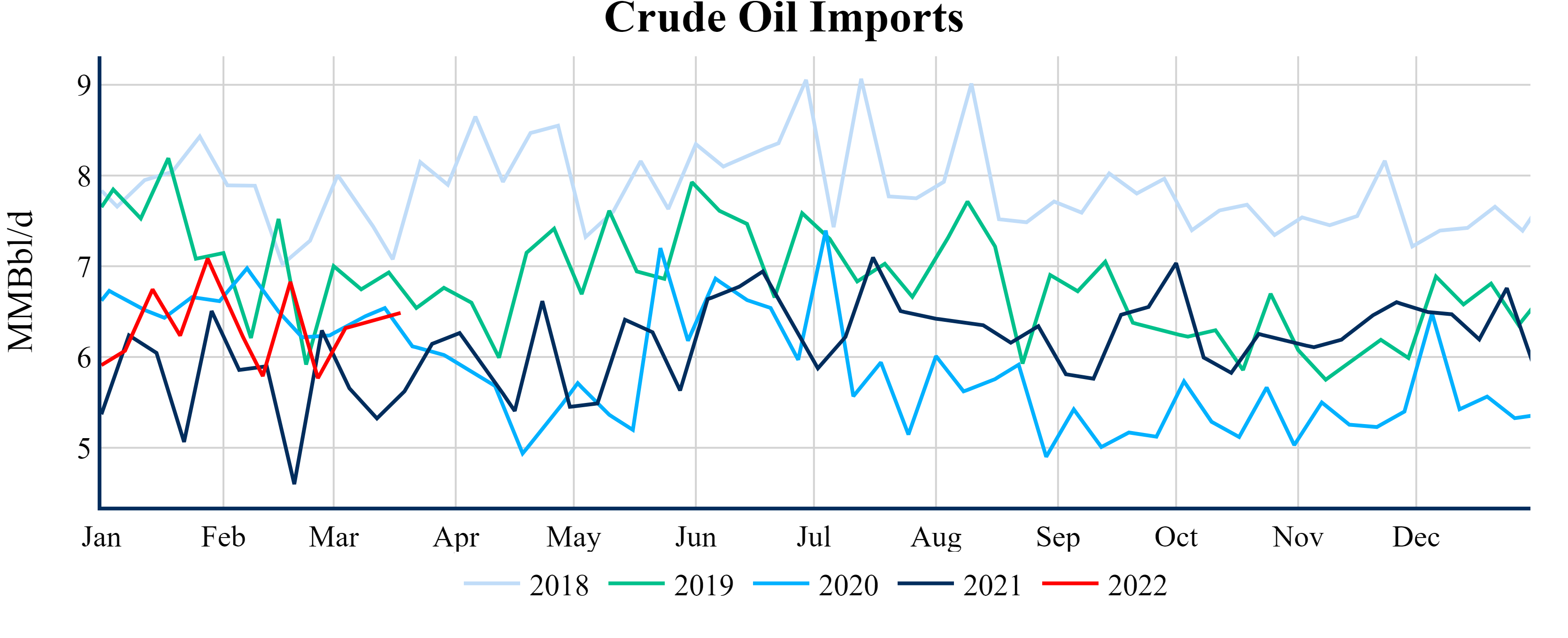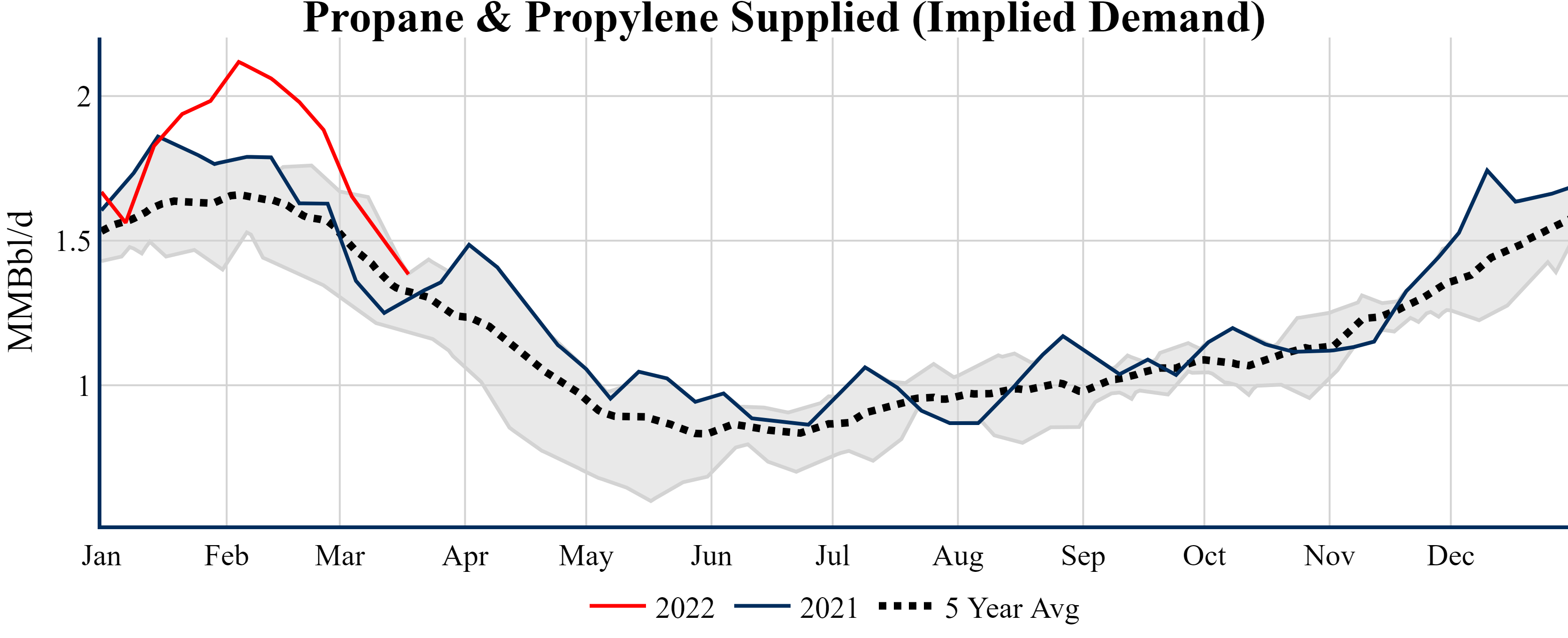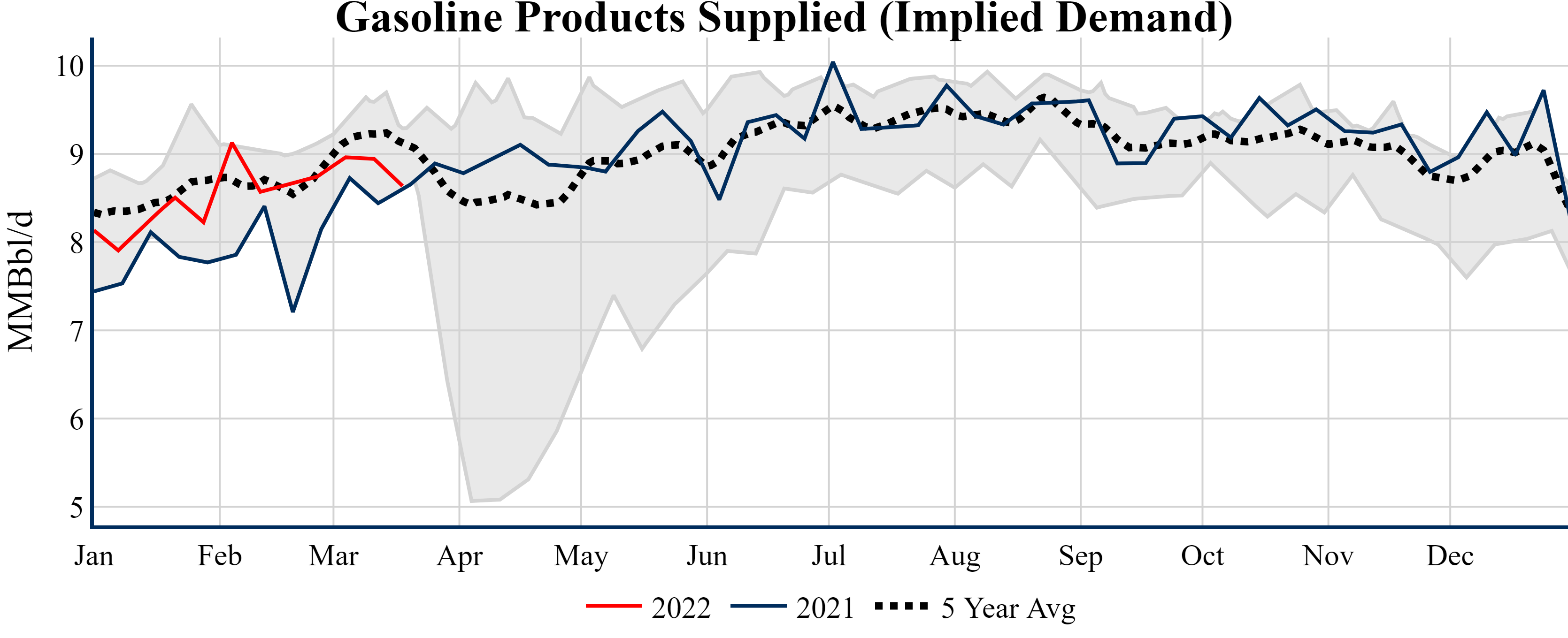 Inventories for the U.S. are now at a deficit of 89.00 MMBbls (-17.7%) to last year, and a deficit of 58.60 MMBbls (-12.4%) to the five-year average.
