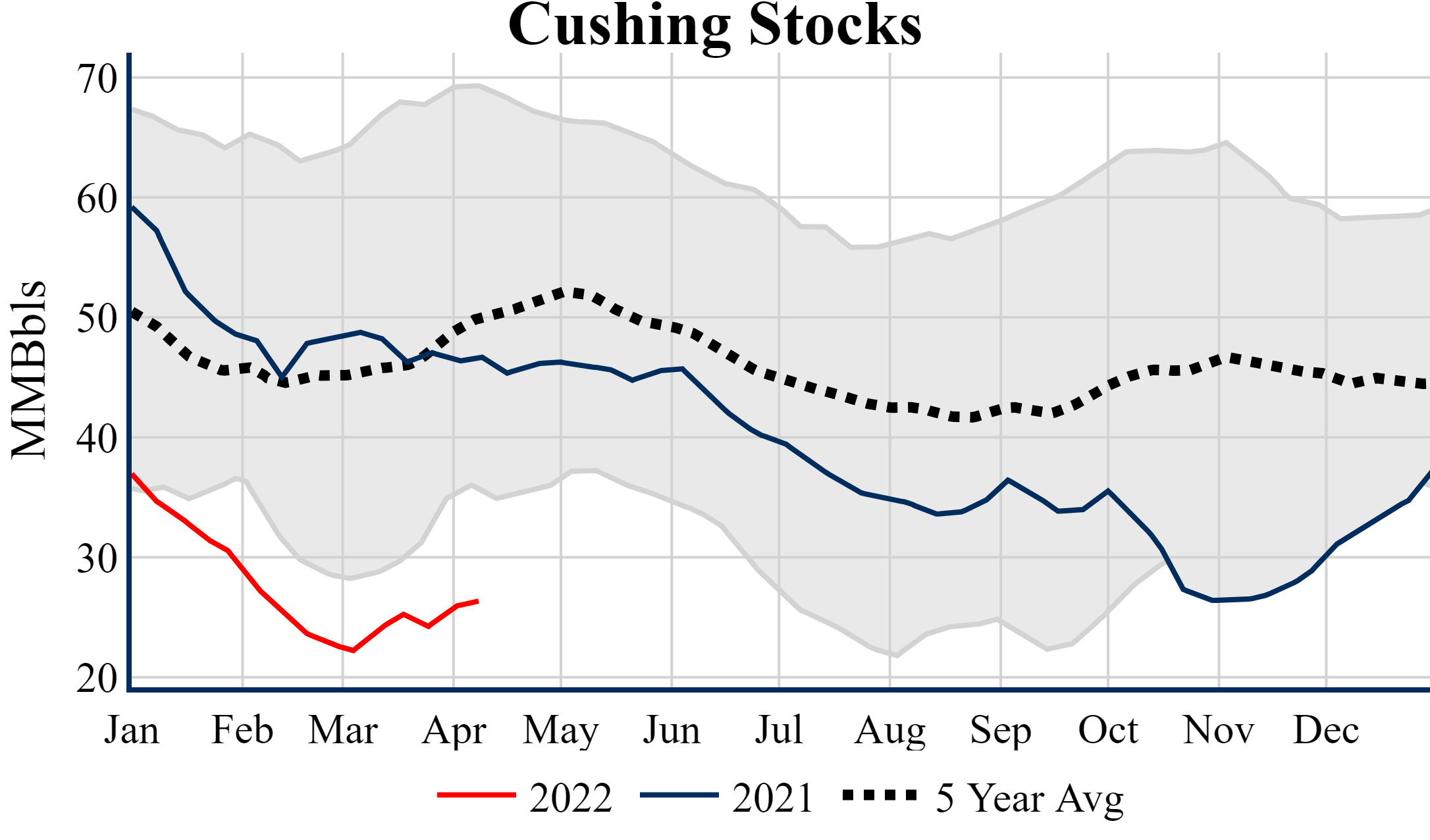 Inventories for the U.S. are now at a deficit of 71.50 MMBbls (-14.5%) to last year, and a deficit of 59.50 MMBbls (-12.4%) to the five-year average.