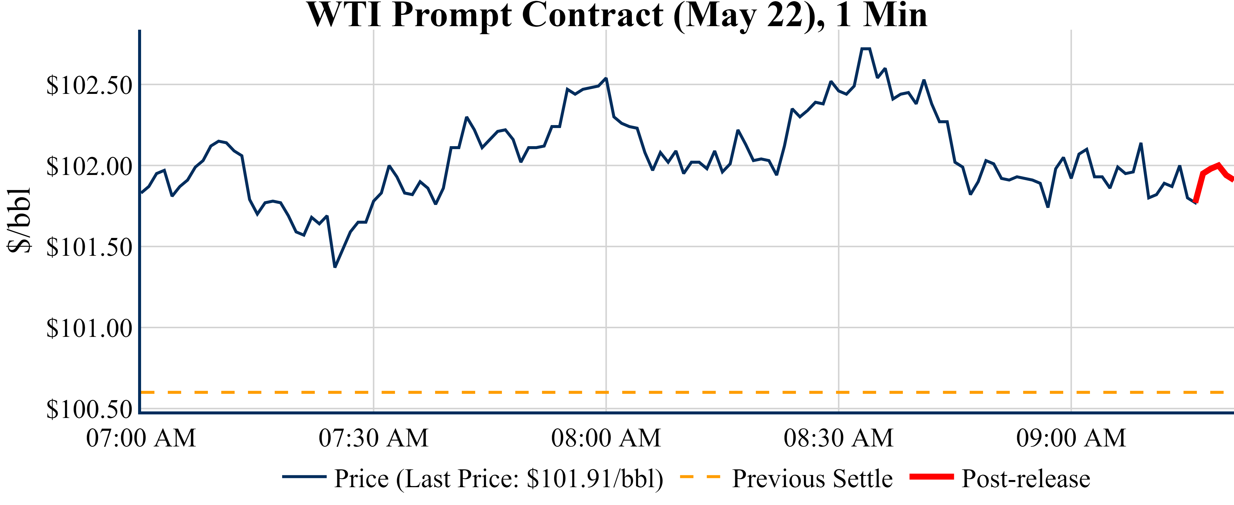 Prices were up in the five minutes following the announcement, to $102.07 from $100.97 just before 09:30 AM.