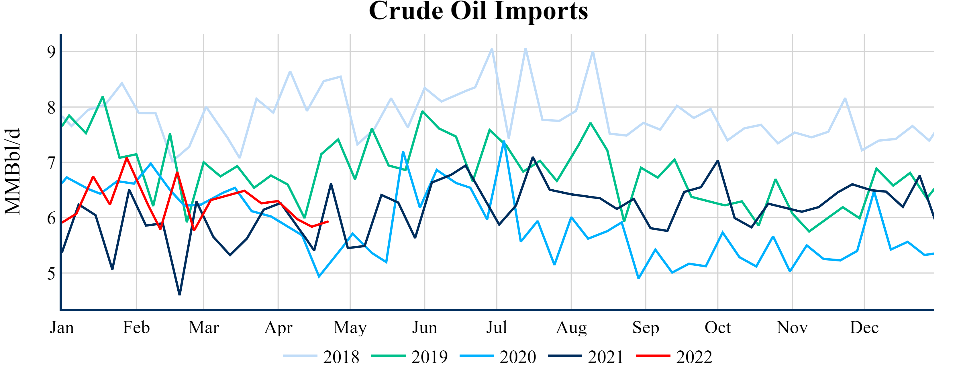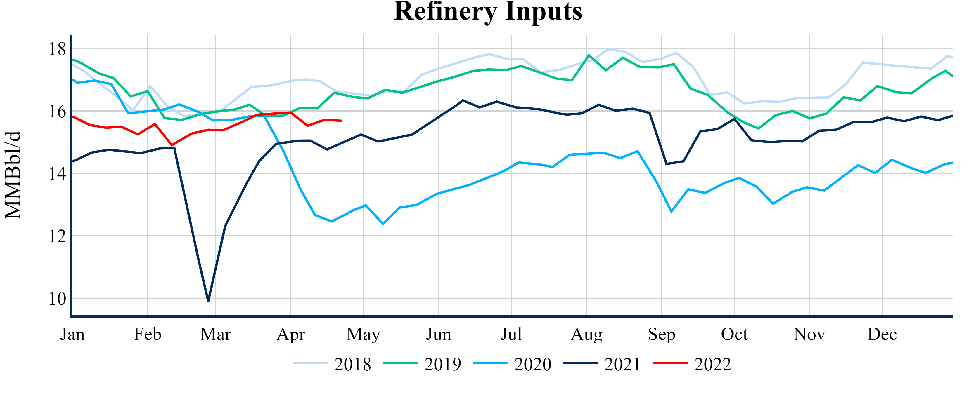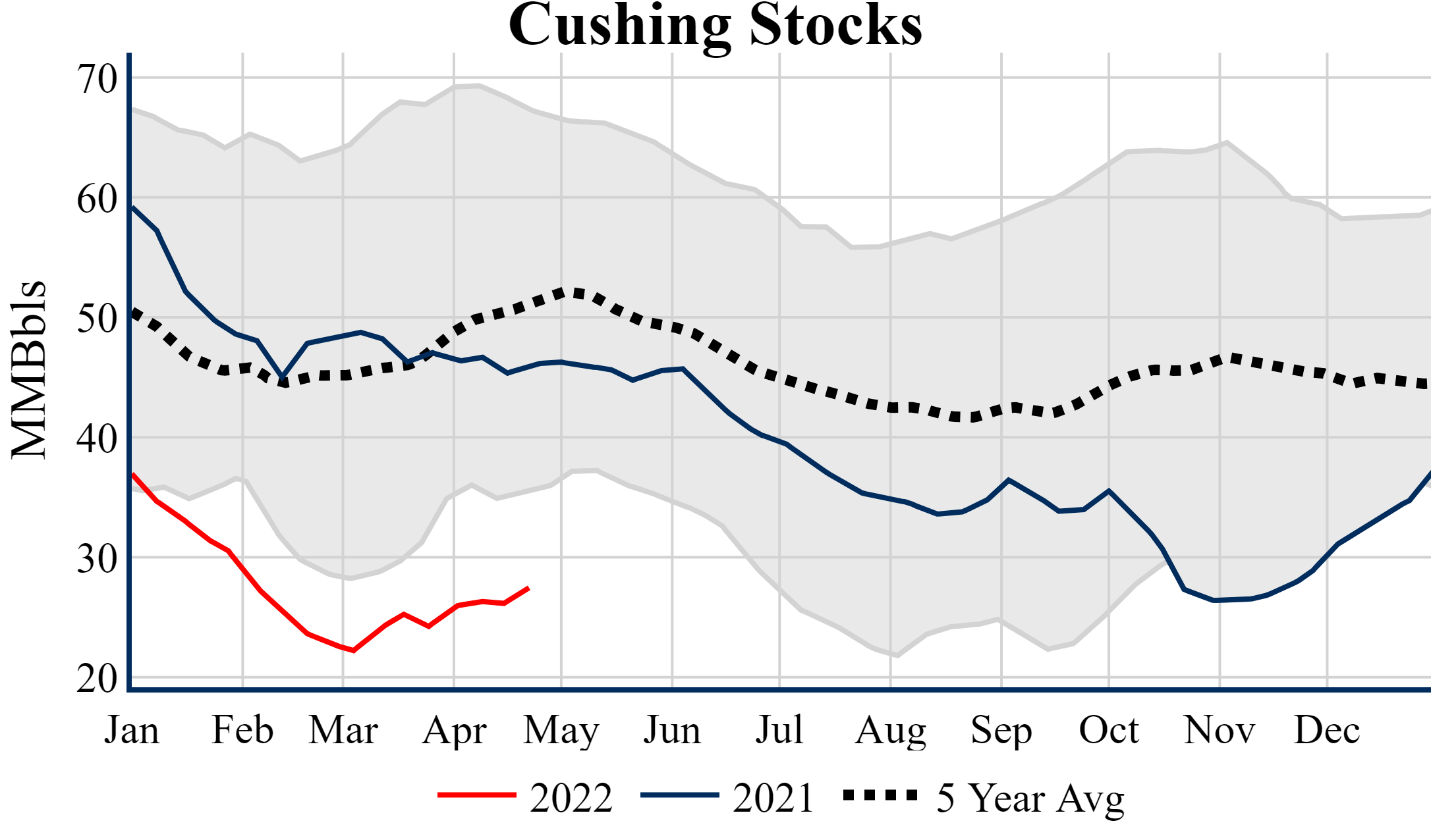 Inventories for the U.S. are now at a deficit of 78.70 MMBbls (-16.0%) to last year, and a deficit of 73.90 MMBbls (-15.1%) to the five-year average.