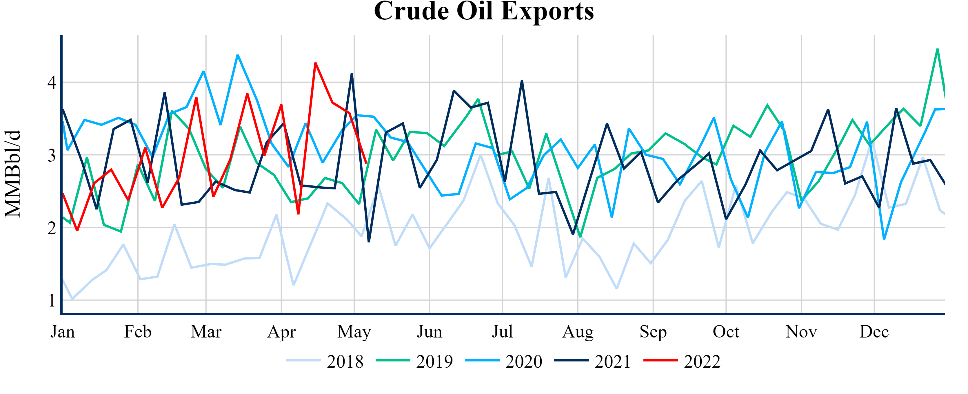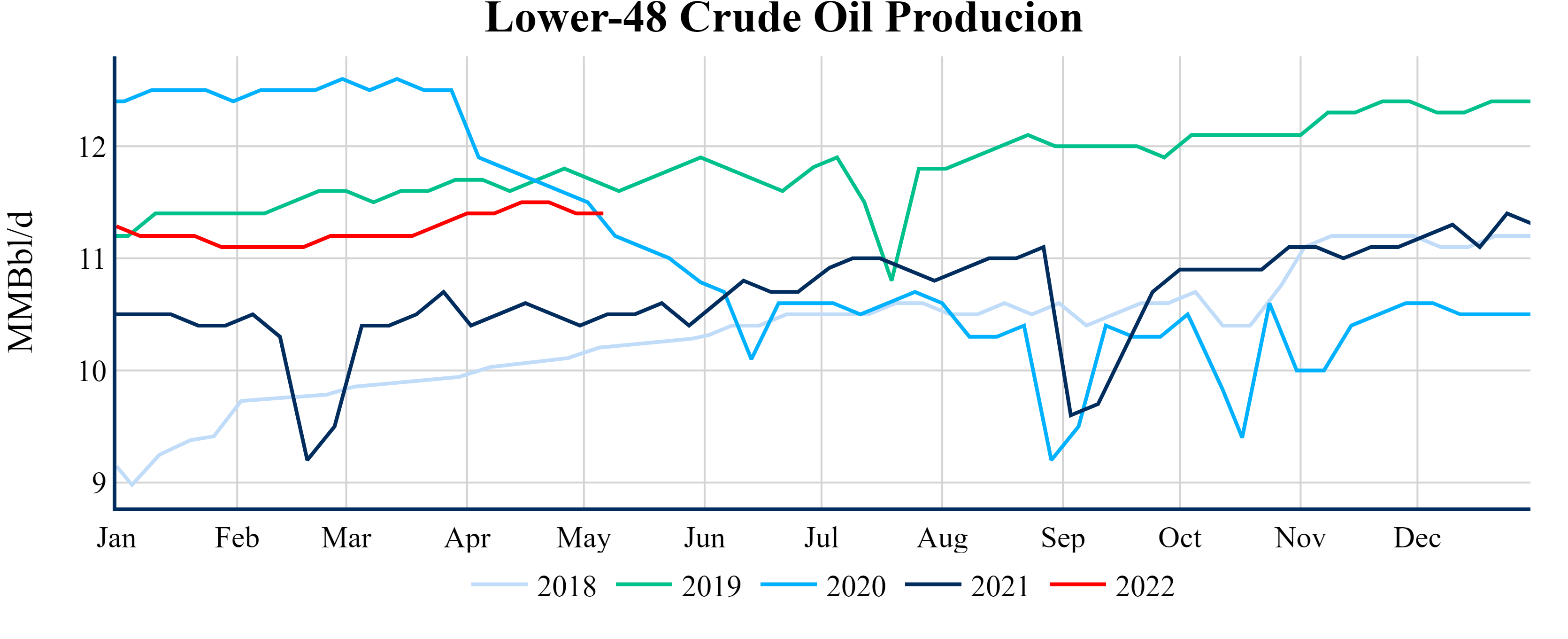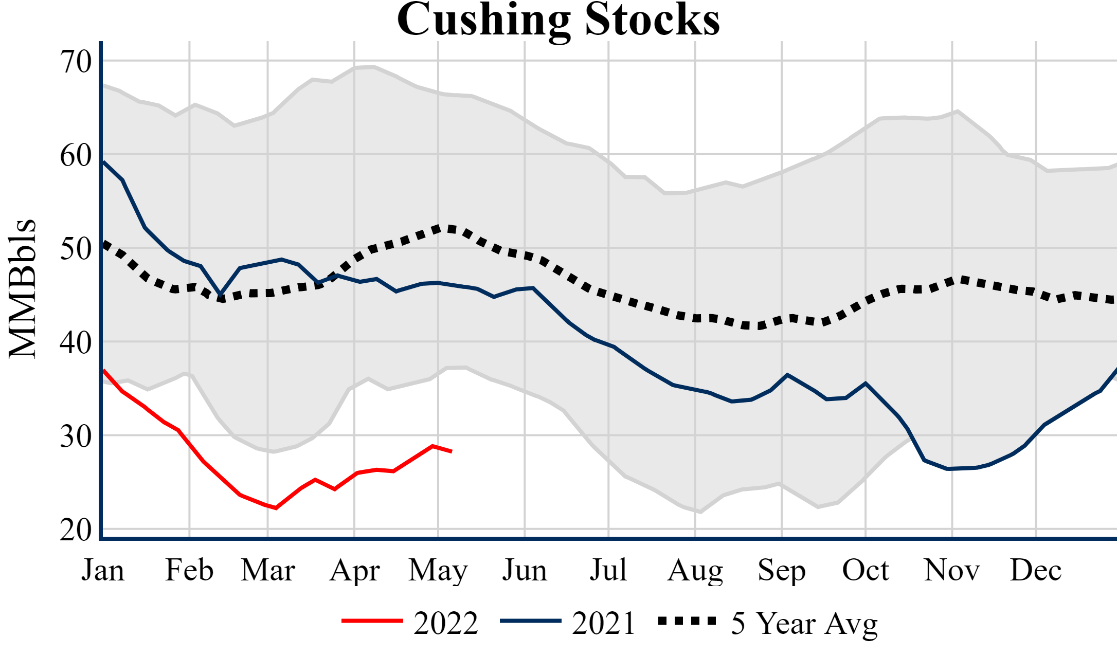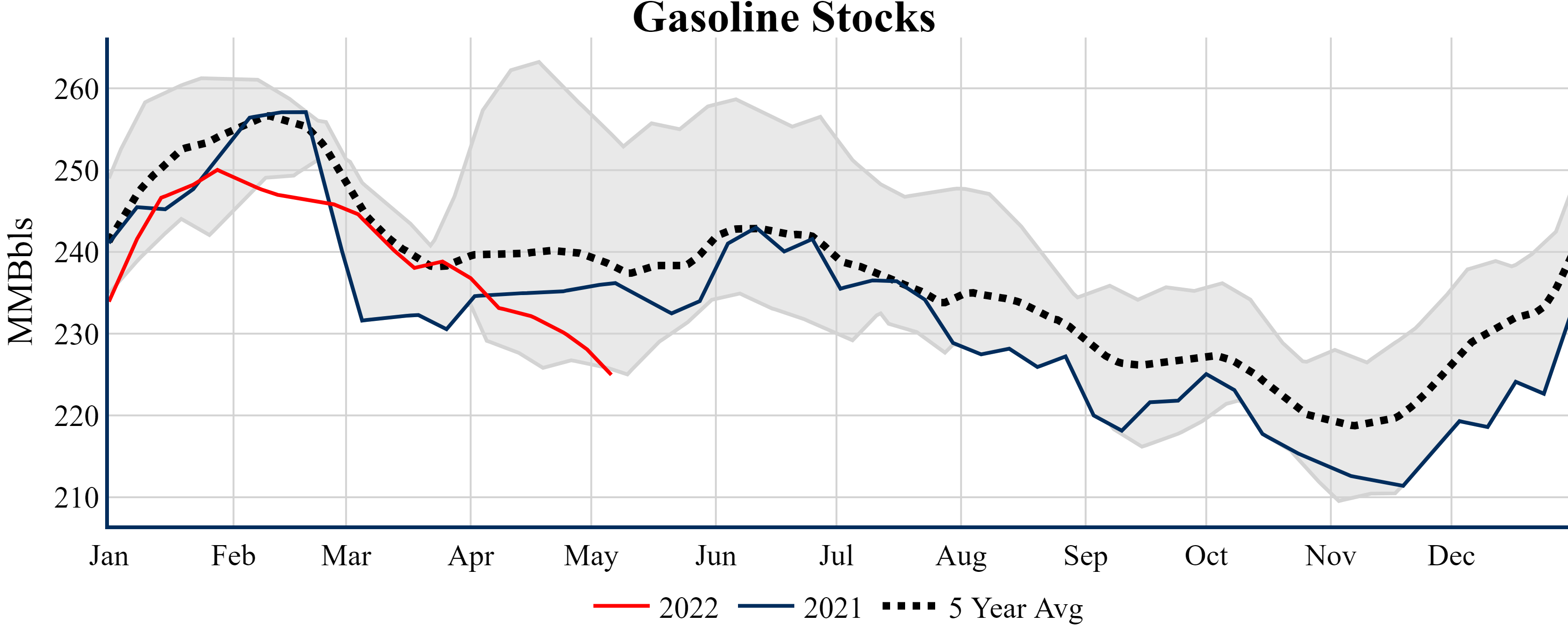 Inventories for the U.S. are now at a deficit of 60.50 MMBbls (-12.5%) to last year, and a deficit of 64.00 MMBbls (-13.1%) to the five-year average.