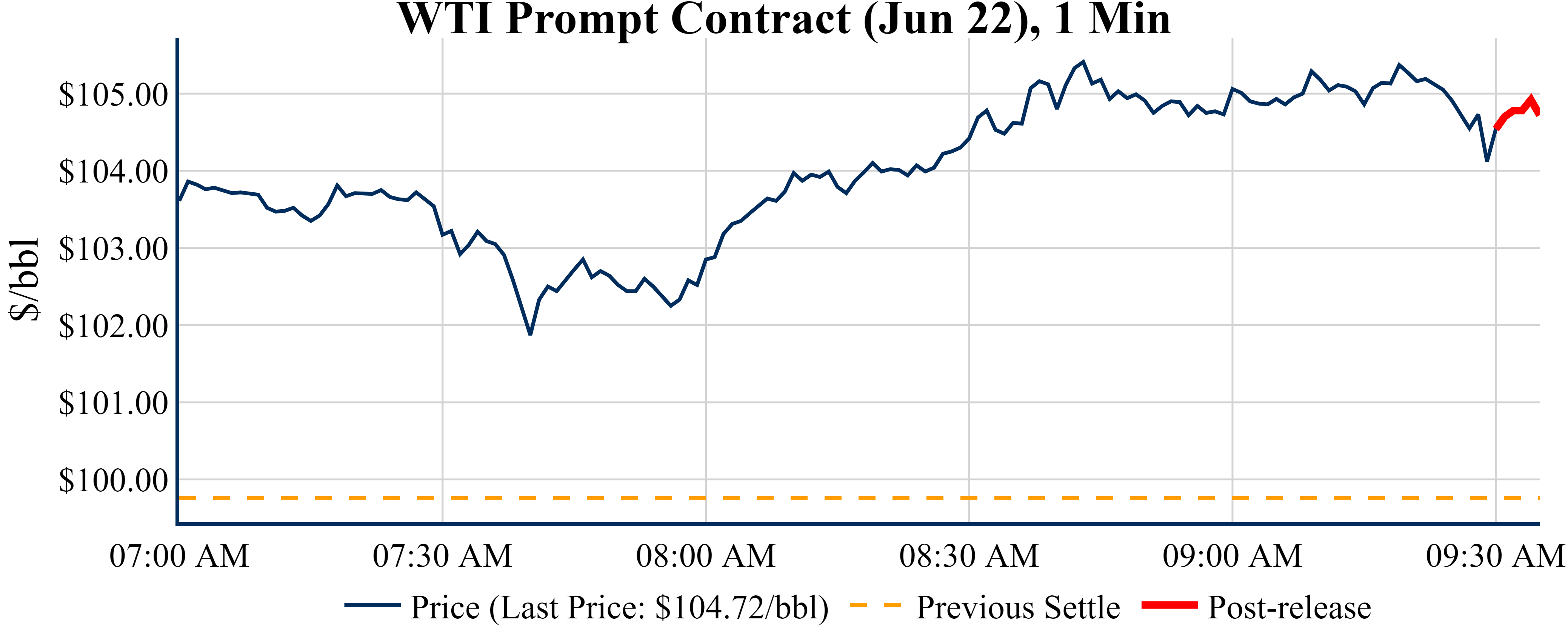 Prices were up in the five minutes following the announcement, to $104.72 from $104.54 just before 09:30 AM.